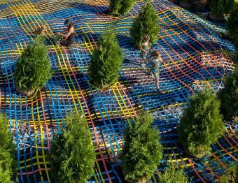 ▼裝置局部,人們可以在大型吊床結(jié)構(gòu)上休息和嬉鬧