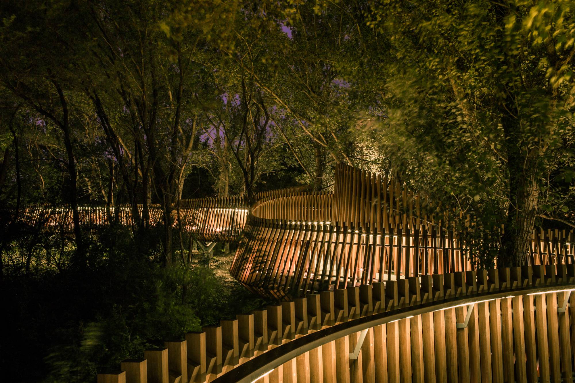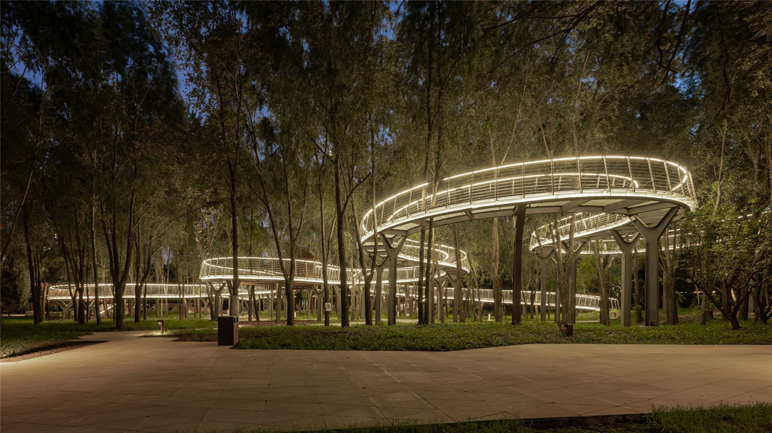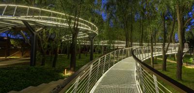 密林里空中棧橋為游人帶來了獨特的感官體驗,為公園內(nèi)原生的動植物提供了棲息及遷徙廊道,形成了人與動植物共存的生態(tài)結(jié)構(gòu)。