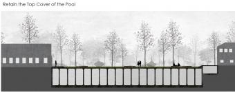 2.低強度影響:保留地下池體結(jié)構(gòu),以池體頂蓋覆土層利用為主。