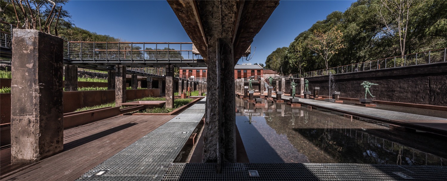 原有露天水池被充分利用,賦予生態(tài)濕地功能,同時實現(xiàn)歷史感的充分再現(xiàn),人與環(huán)境的充分互動。
