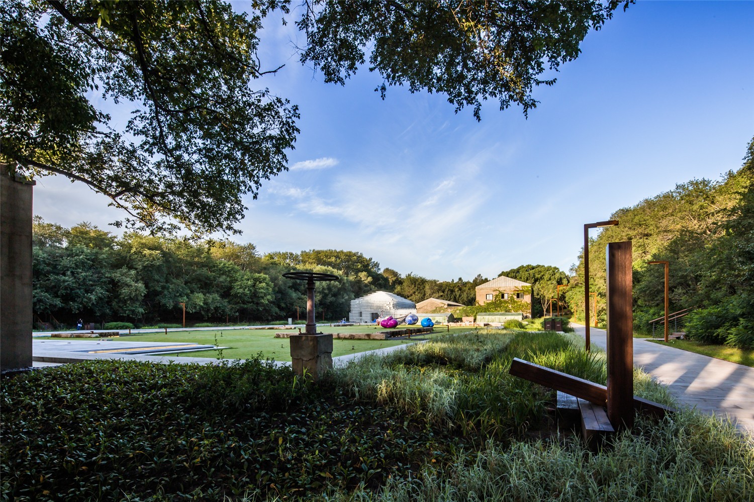 景觀設(shè)計突出系統(tǒng)性,結(jié)合原址動植物生態(tài)環(huán)境,嚴(yán)格控制設(shè)計強度,形成了慢行系統(tǒng)。