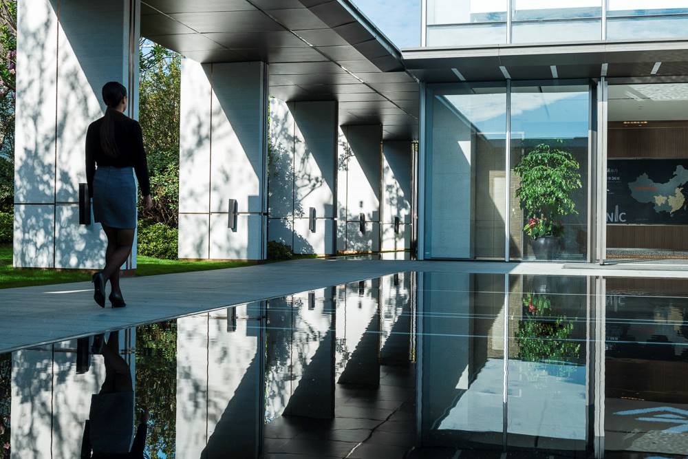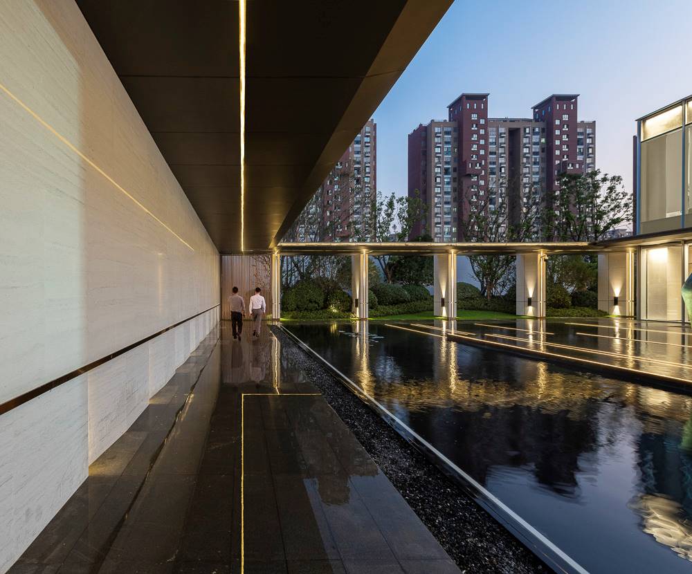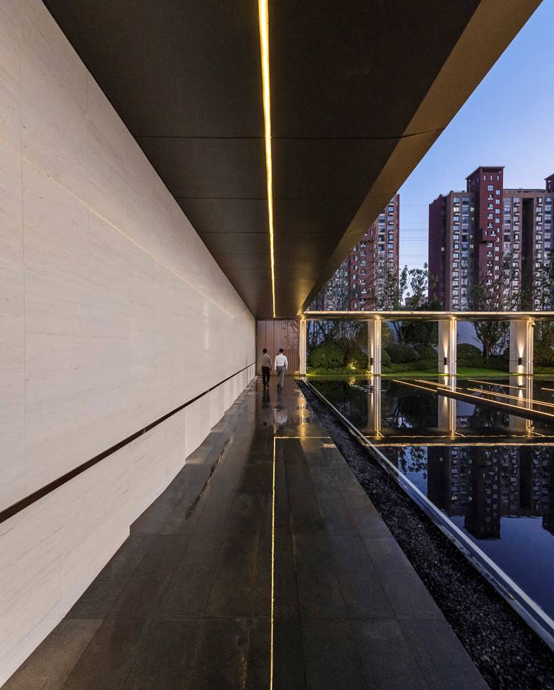 單側(cè)連廊打開視線,中庭水景隨眼舒展