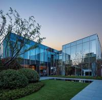 由于建筑運(yùn)用了大面積的玻璃和深色金屬框架
