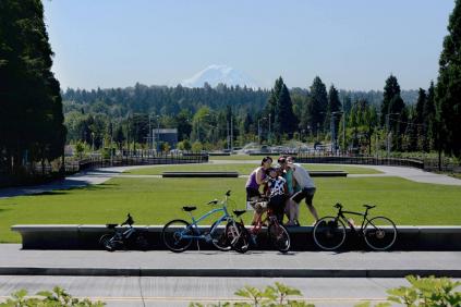 ▲改造后,地形微妙起伏、不斷延伸的場(chǎng)地平面將人們的視線引向雷尼爾山,人們可以利用軸線中的小型廣場(chǎng)來(lái)穿越草地、休憩,或拍攝雷尼爾山的壯麗景色。