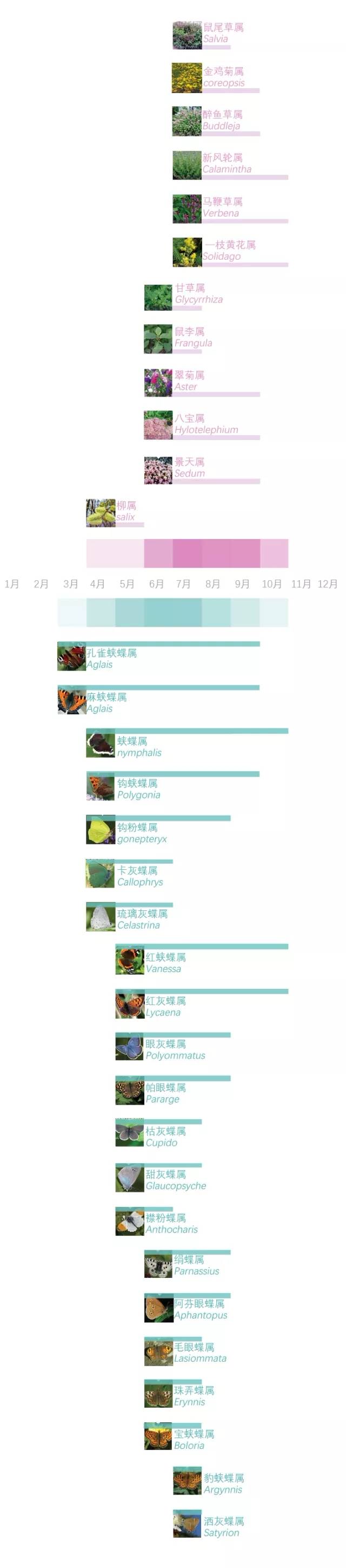 為了實現(xiàn)這一設(shè)想,場地中所種植物的花期也要盡可能和蝴蝶成蟲的訪花時段相重合。