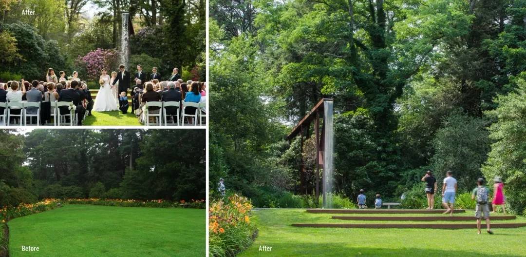 水池和瀑布為萱草花園提供了可進(jìn)行多樣活動(dòng)的空間,現(xiàn)已經(jīng)成為了舉辦婚禮、季節(jié)性活動(dòng)的小型演出場(chǎng)地。得益于和博物館、項(xiàng)目開發(fā)者、材料制造商的充分溝通,設(shè)計(jì)師在原生態(tài)場(chǎng)地內(nèi)嵌入了大膽且感性的設(shè)計(jì),讓來訪者盡情享受這片自然景象與花園。