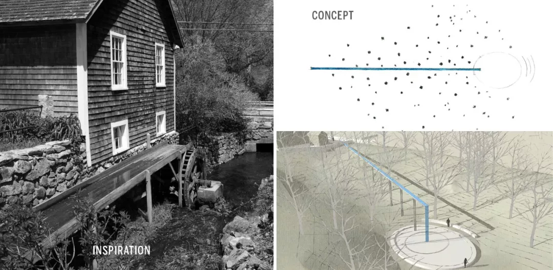 遺產(chǎn)博物館花園水渠小心地穿過被樹木覆蓋的偏僻小山谷和一片少有人問津的草坪,將這些區(qū)域改造成遺產(chǎn)博物館和花園中具有代表性的場(chǎng)所。設(shè)計(jì)通過重新詮釋該地區(qū)歷史悠久的磨房引水槽,探索了美國景觀設(shè)計(jì)歷史與當(dāng)代設(shè)計(jì)的交匯點(diǎn),增加了游客的多重感官體驗(yàn),豐富了花園景色,并協(xié)助博物館實(shí)現(xiàn)向年輕人分享美國歷史的使命。