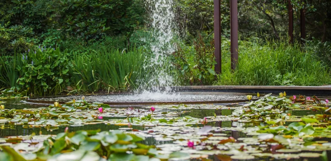 在萱草花園,水渠從最后一個(gè)傾斜的支撐臂開始懸挑出來,水流傾斜而下,落入水花園的人工水池中。水池中將展出一種新的水生植物品種,成為博物館花園園藝品種的重要補(bǔ)充。