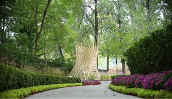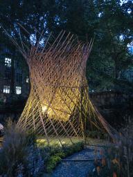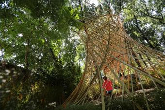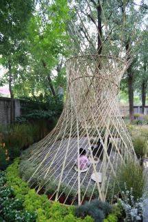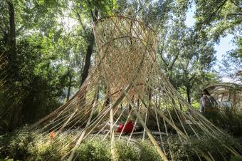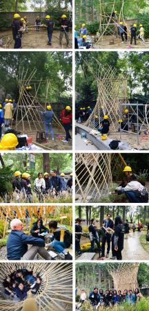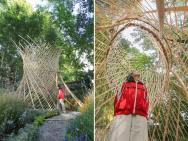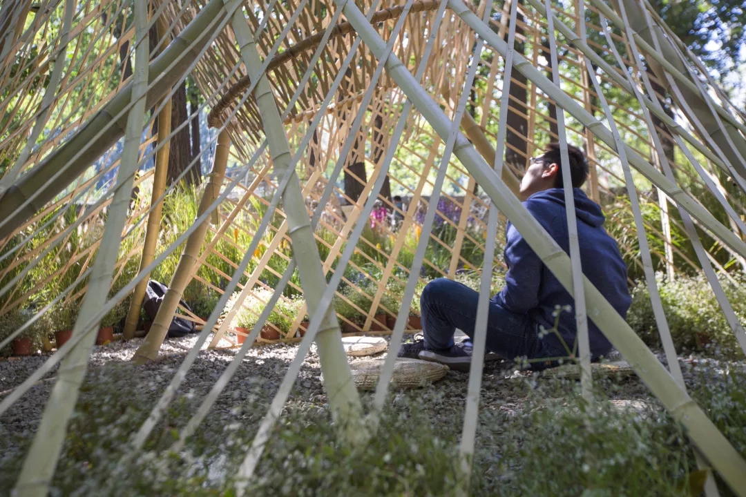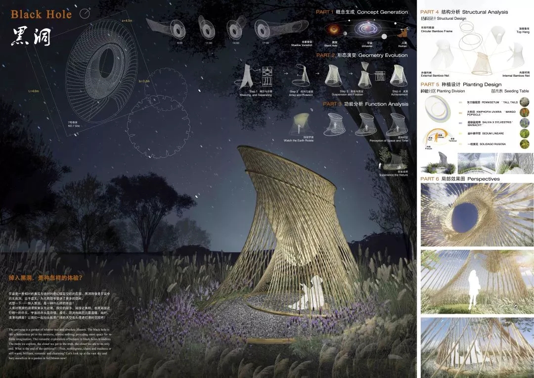 “黑洞”是北京林業(yè)大學(xué)代表參加2019第二屆北林國際花園建造節(jié)的一等獎(jiǎng)設(shè)計(jì)作品。此次競(jìng)賽主題為 “花園的詩意”,以原竹和花卉為主要材料,經(jīng)過設(shè)計(jì)作品的篩選,在為期3天半的時(shí)間內(nèi)完成15個(gè)竹構(gòu)花園的現(xiàn)場(chǎng)搭建。在“花園的詩意”主題下, “黑洞”團(tuán)隊(duì)認(rèn)為,宇宙中的萬物其實(shí)都是一座值得探索的詩意花園,關(guān)鍵在于我們能否以一種寧靜超脫的心情去探索。方案靈感來源于浩渺星河中的“黑洞”,利用竹子易于彎曲且自由生長的特性,結(jié)合自然野趣的植物配置,營造了一座吸引人進(jìn)入,探索自我、遐想宇宙的詩意花園。