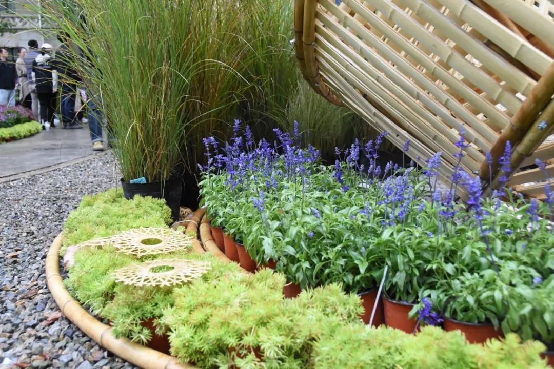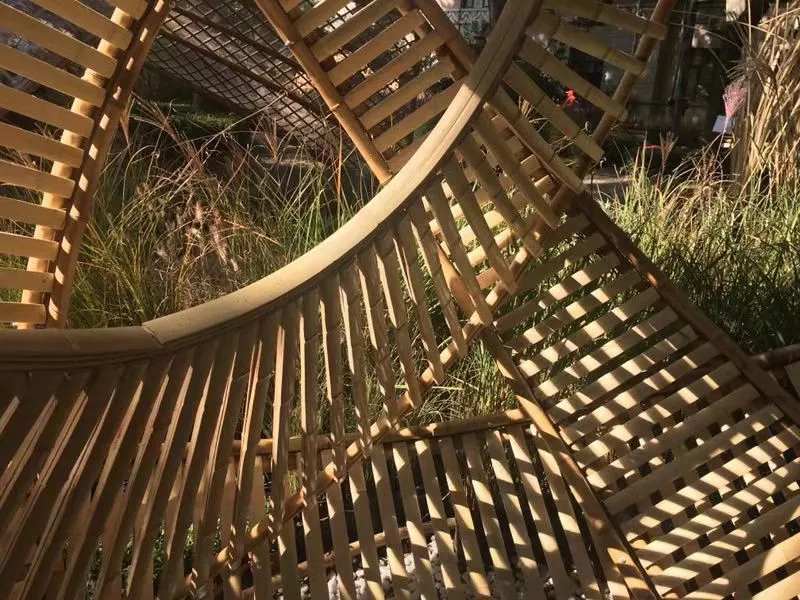 空間設(shè)計(jì)上,花境和竹境融為一體,營(yíng)造“人在竹境內(nèi),猶在輕風(fēng)中”的意境。結(jié)構(gòu)設(shè)計(jì)上,在遵循可行性原則的基礎(chǔ)上,也充分展現(xiàn)柔韌的竹性?;ň吃O(shè)計(jì)上,地面流線造型結(jié)合芒草形成風(fēng)的軌跡,實(shí)現(xiàn)風(fēng)竹交融,營(yíng)造出詩(shī)意境界。
