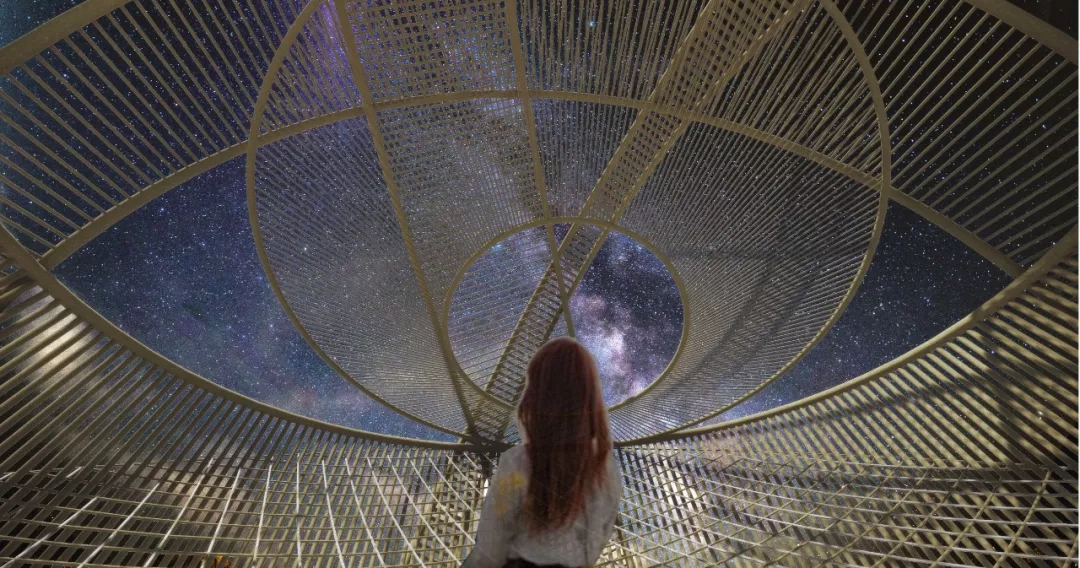 同時(shí),成員們運(yùn)用中國(guó)傳統(tǒng)造園的框景手法,將內(nèi)側(cè)的圓片設(shè)計(jì)為視窗,有選擇地將外部景色收入框中,形成一幅很好的風(fēng)景畫,營(yíng)造浪漫的意境美。