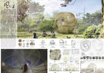 風(fēng),以動(dòng)御萬(wàn)物;巢,博眾家之長(zhǎng),本次設(shè)計(jì)作品的靈感正是來(lái)源于風(fēng)御巢動(dòng)之感,以輕盈的竹構(gòu)作靈感之巢,以搖曳的花境展現(xiàn)巢聚之勢(shì),“動(dòng)靜結(jié)合”?!帮L(fēng)巢”指的是學(xué)生們創(chuàng)作的靈感如同百鳥歸巢,在風(fēng)的使動(dòng)下聚少成多。“風(fēng)巢”亦可讀為“風(fēng)潮”,“筑巢引風(fēng)”,表現(xiàn)了風(fēng)華正茂的青年學(xué)生創(chuàng)造新時(shí)代的魄力。