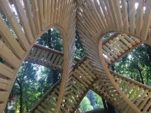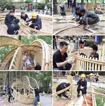 整個(gè)建造過(guò)程包括材料分類、主體結(jié)構(gòu)搭建、表皮紋理構(gòu)建、結(jié)構(gòu)組裝以及花境營(yíng)建等各種建造工作,總共歷時(shí)三天半。團(tuán)隊(duì)成員在帶隊(duì)老師的指導(dǎo)下積極解決形態(tài)美感、結(jié)構(gòu)穩(wěn)定性、肌理構(gòu)建、交接點(diǎn)連接方式等主要的問(wèn)題,保證整體效果的嚴(yán)謹(jǐn)美觀,體現(xiàn)了均衡、連續(xù)、重復(fù)的形式美法則。