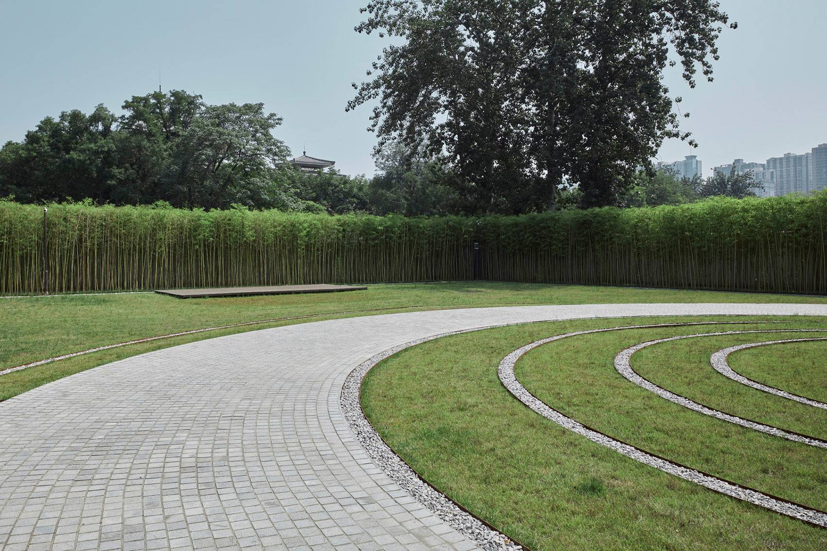 “禪”作為中國智慧的一種,是中華文化組成的重要部分,在佛教的禪宗領(lǐng)域“禪”是最高智慧,有不可說,不能說,不必說的特性。禪境景觀基于“禪”的智慧,表達(dá)“空”的思想?;凇翱铡钡乃枷耄鲝埍娚_(dá)到一種超脫覺悟。小雁塔是西安歷史文化街區(qū)的重要組成,傳承保護(hù)城市歷史文脈,整合歷史、文化、旅游、文物資源,建設(shè)小雁塔古建筑群、唐文化風(fēng)貌展示區(qū)、生態(tài)遺址公園和商業(yè)服務(wù)設(shè)施等城市公共空間新格局。小雁塔文化展示中心位于西安市朱雀大街北段,面積約5000㎡。這塊禪意之地雖鑲嵌在這個迅速發(fā)展壯大的城市縫隙間中,是繁重行文間必不可缺啥少的逗號,是高樓林立間不可缺少的綠地,是城市里最后的詩。