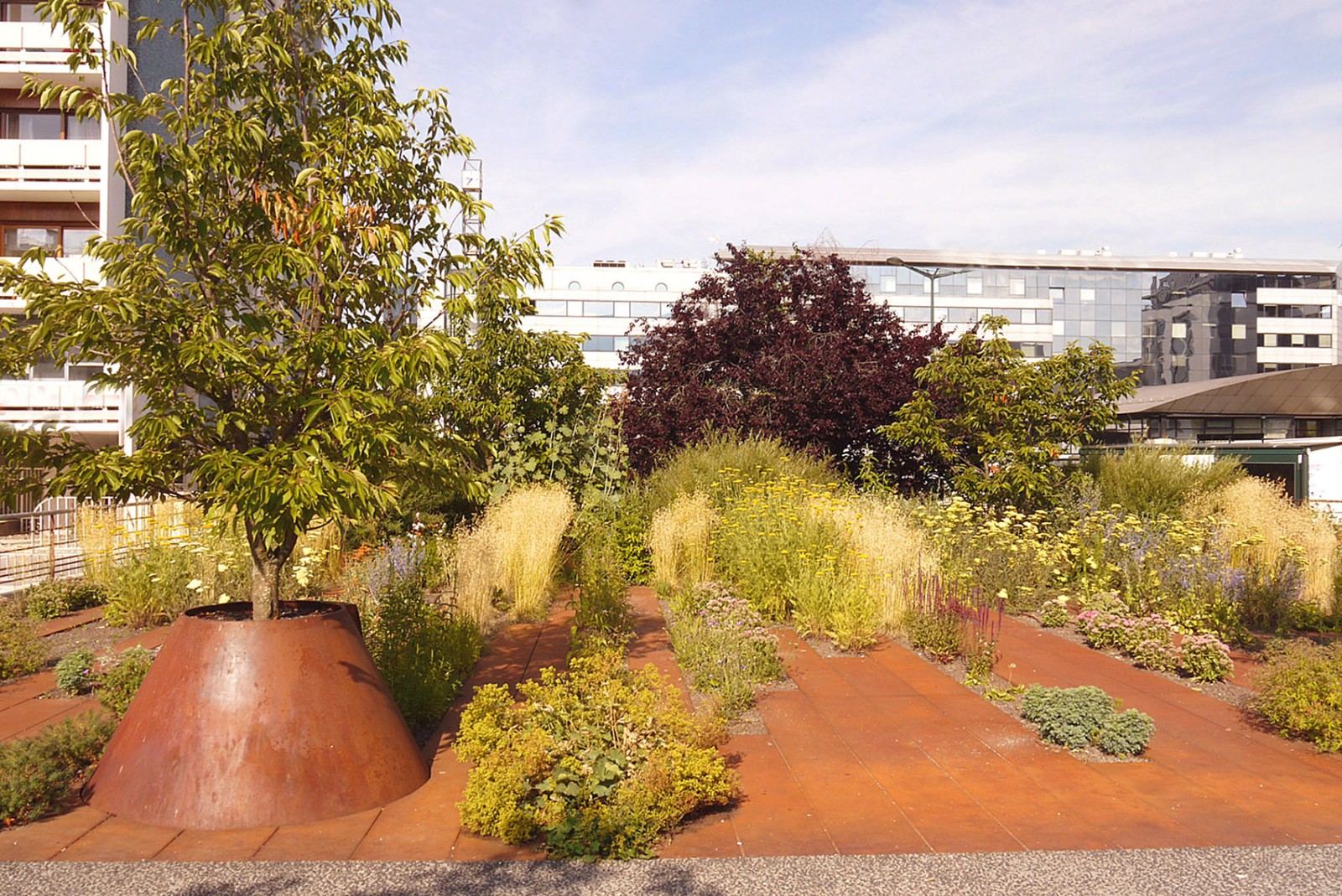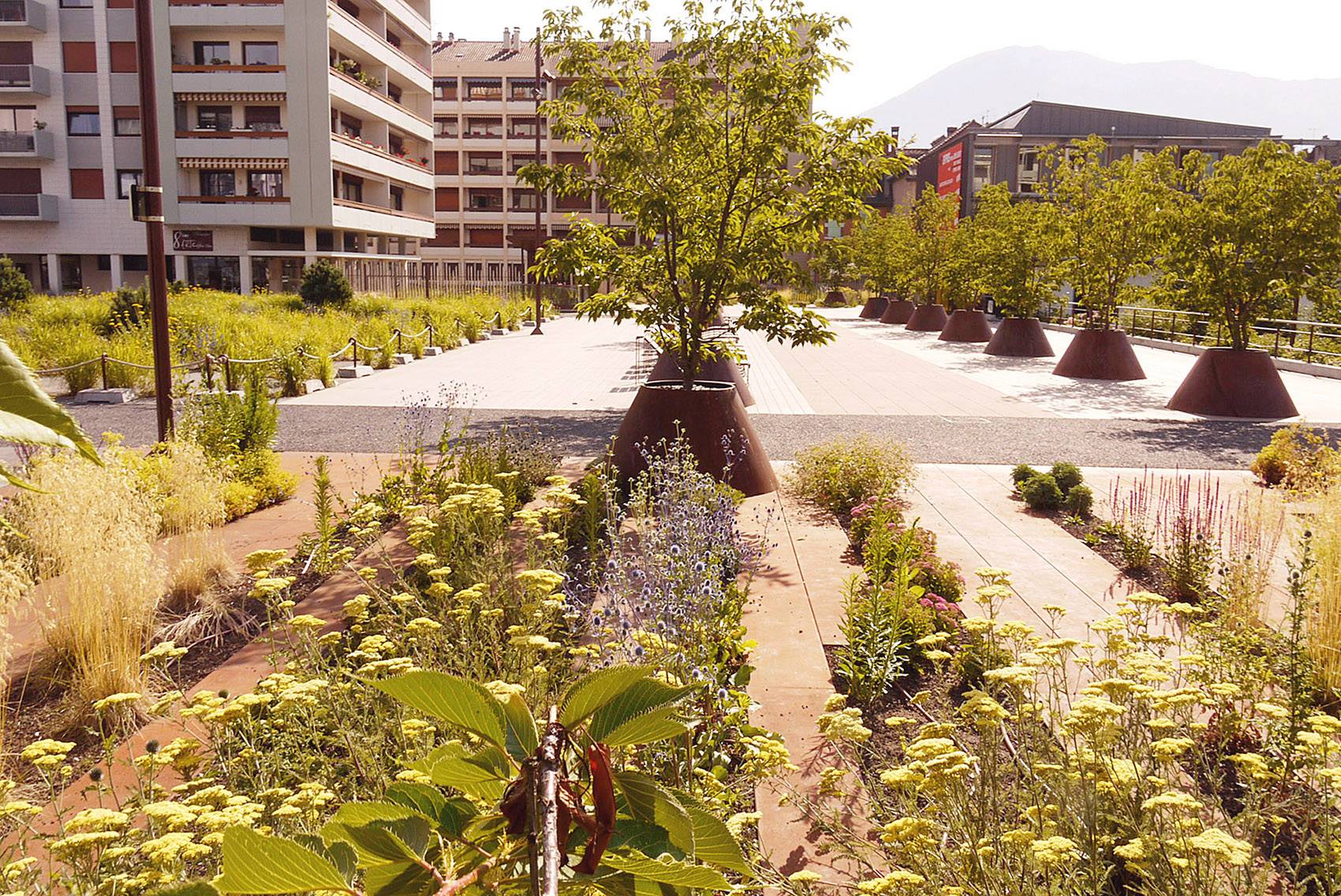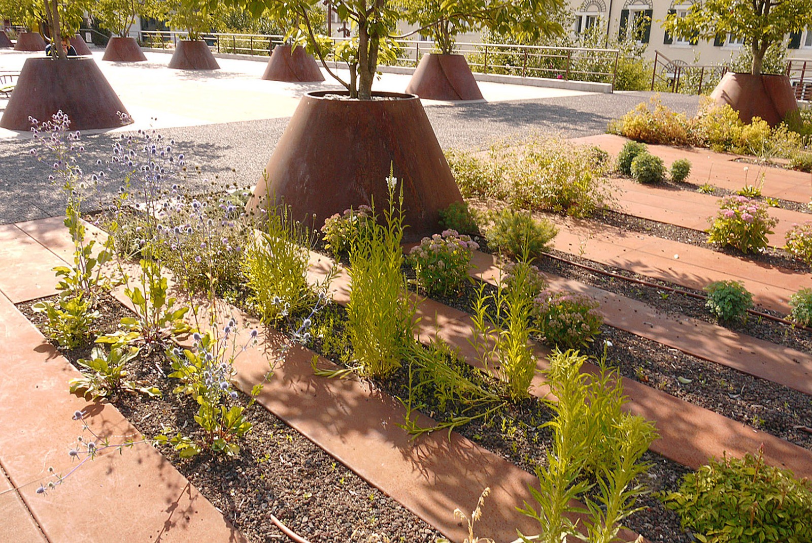 廣場(chǎng)的北部是一個(gè)種有植物的三角形散步場(chǎng)地。平坦的地勢(shì)和與生長(zhǎng)相關(guān)的主題使人們聯(lián)想到拉皮亞茲式的“石灰平原”。