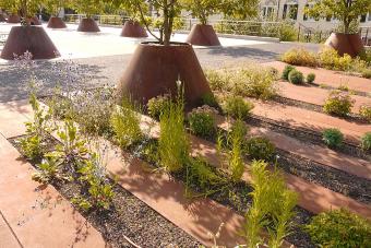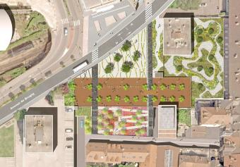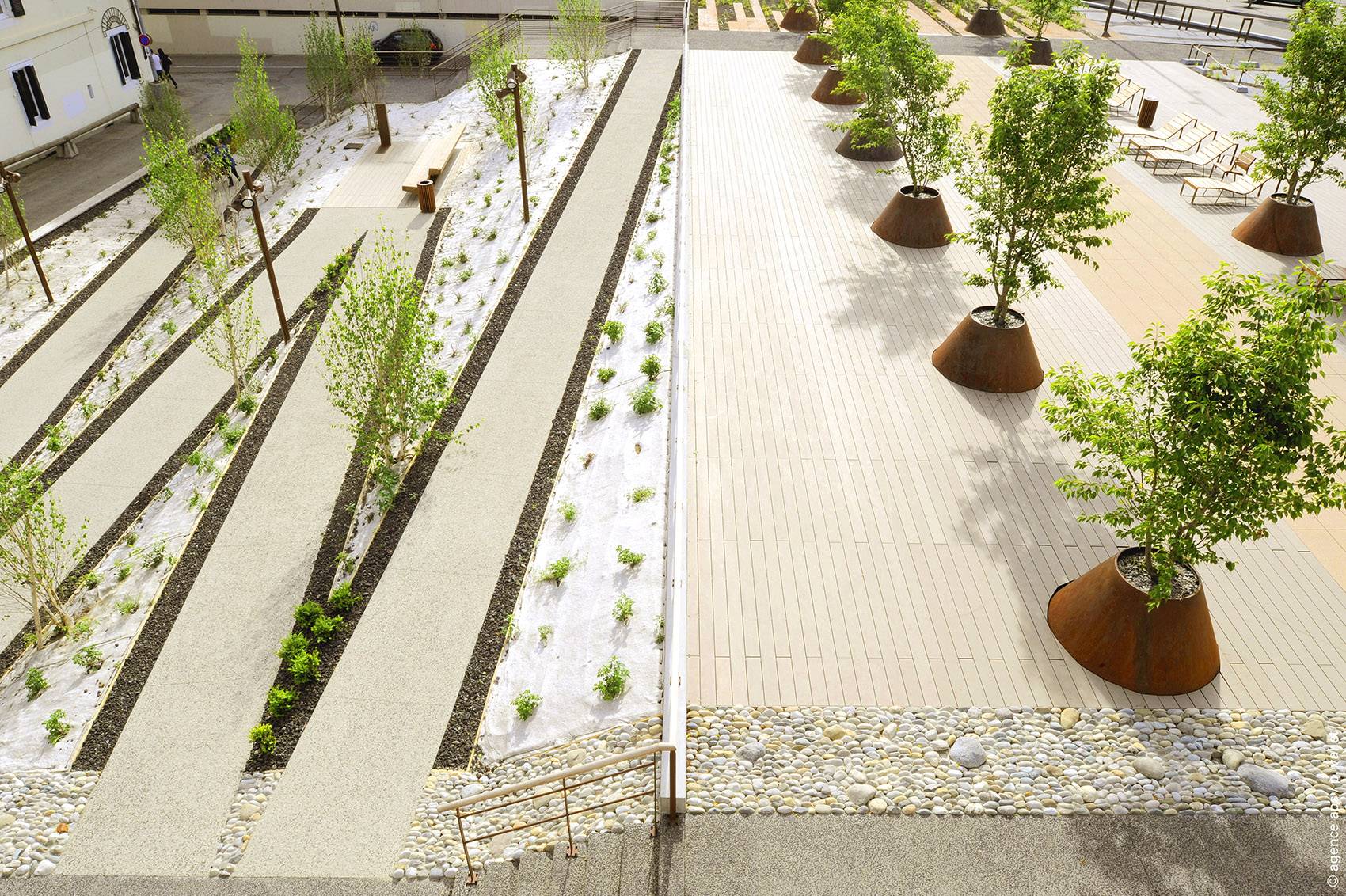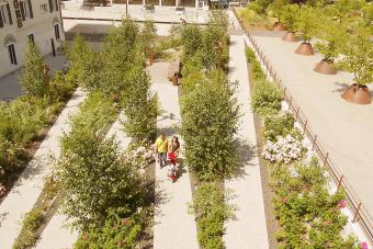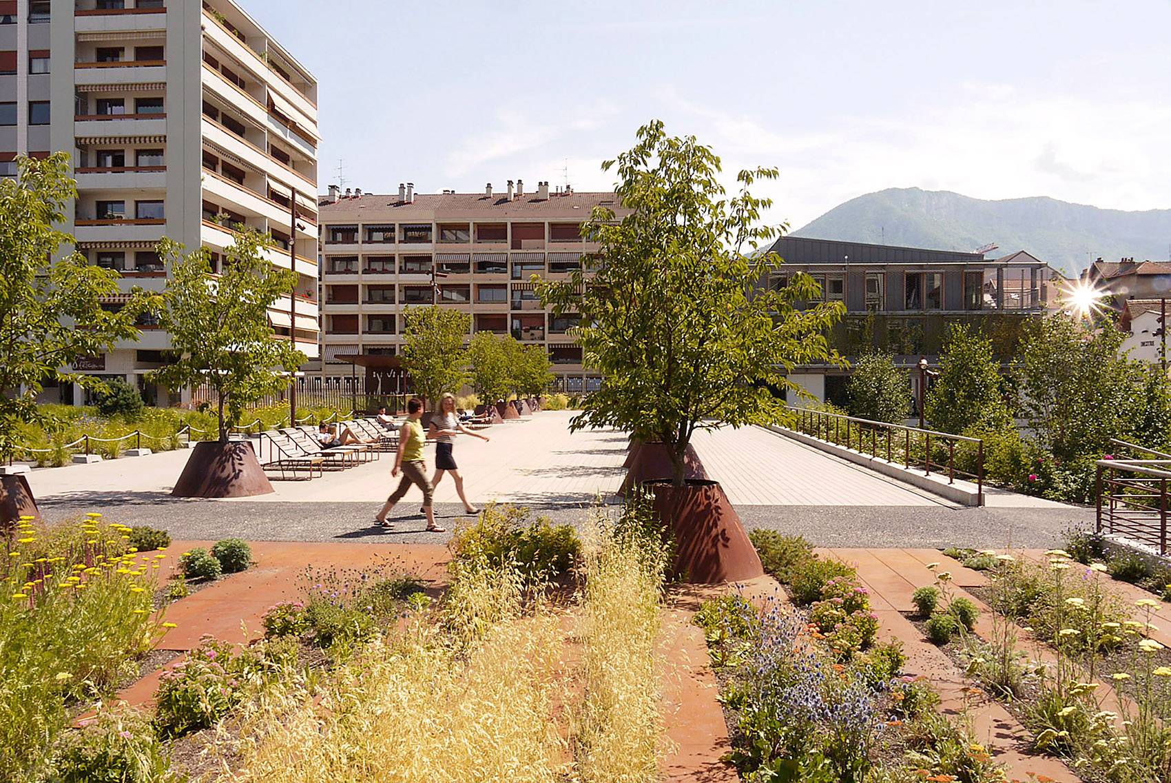 廣場(chǎng)的北部是一個(gè)種有植物的三角形散步場(chǎng)地。平坦的地勢(shì)和與生長(zhǎng)相關(guān)的主題使人們聯(lián)想到拉皮亞茲式的“石灰平原”。