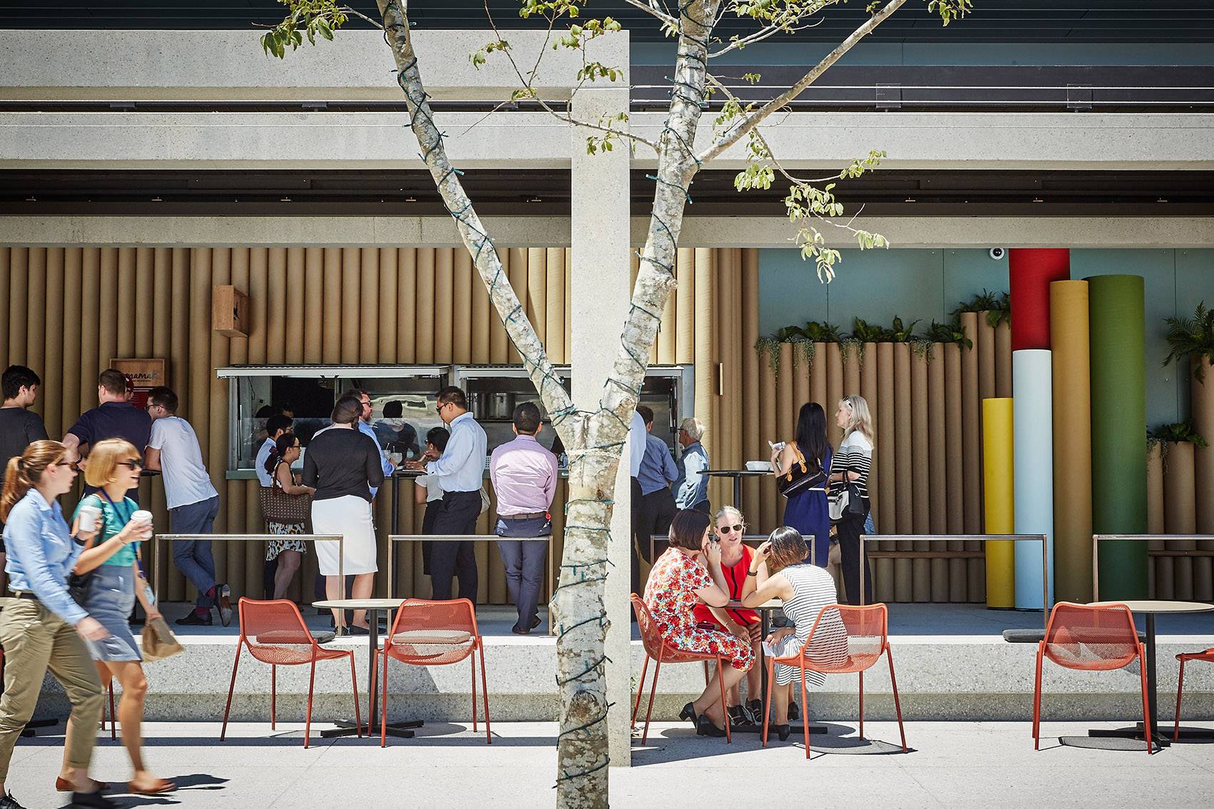 ▼沿著長(zhǎng)廊布置有設(shè)計(jì)定制的食品車吸引人群在這里進(jìn)行多樣化的活動(dòng)