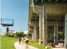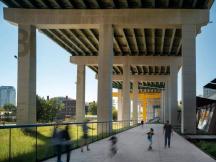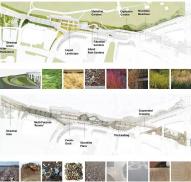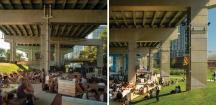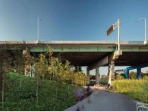 高速公路橋下的地面被改造為連續(xù)而靈活的平面空間,它將公有和私有土地連接在一起,通過新設(shè)的道路促進人群流動,處理雨水并利用被移置的土壤建立新的地形,景觀借助這樣的地形重現(xiàn)了過去的海岸線。項目展現(xiàn)了設(shè)計的智慧,以及用最小化設(shè)計實現(xiàn)最大化改變的追求。