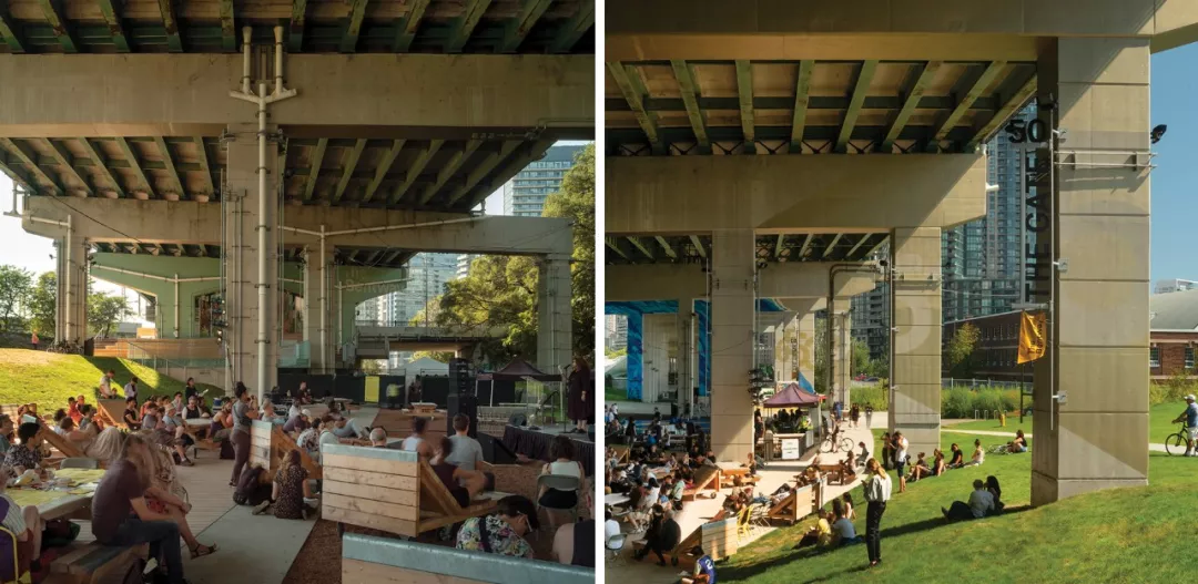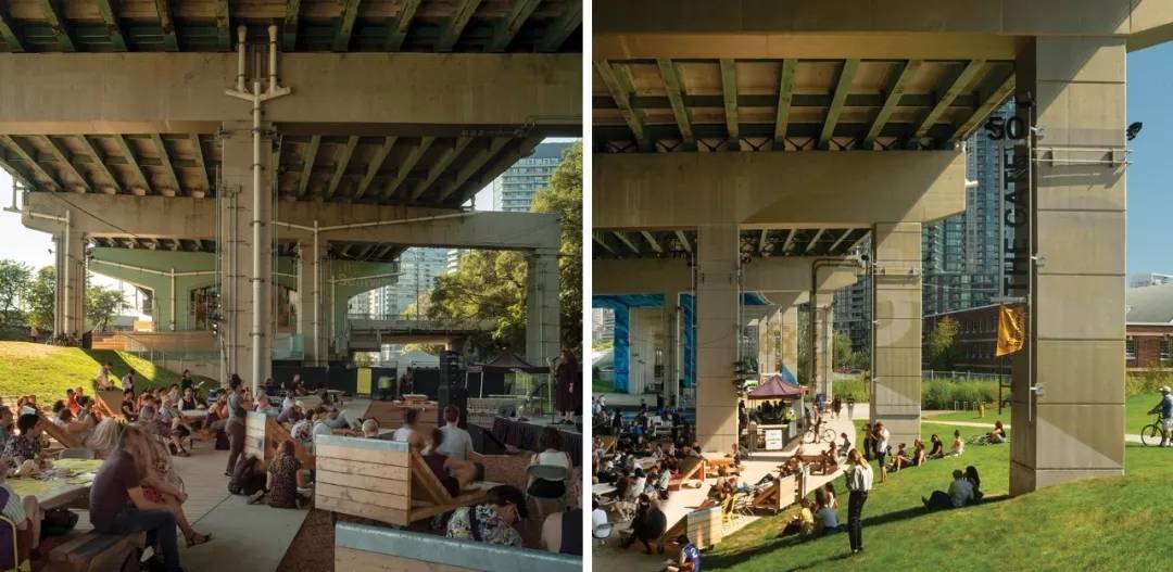 ▲根據(jù)公共空間設(shè)計與規(guī)劃,公園提供基礎(chǔ)設(shè)施,支持各種各樣的體驗活動在此進行 ?Bentway管理局