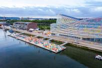 法國魯昂艦隊每五年舉辦一次聚會,將世界上最大的帆船和船艦召集在一起。當聚會舉辦時,游人可在此盡情觀看靜止的雄偉充滿魅力的各式各樣的船。一些功能性的場景將在場地與海上建筑之間和諧地構(gòu)建起來。主辦方將木制的桅桿與船帆組合而成的一系列木樁疊加在一起,垂立于棚屋、碼頭、水中和岸邊。