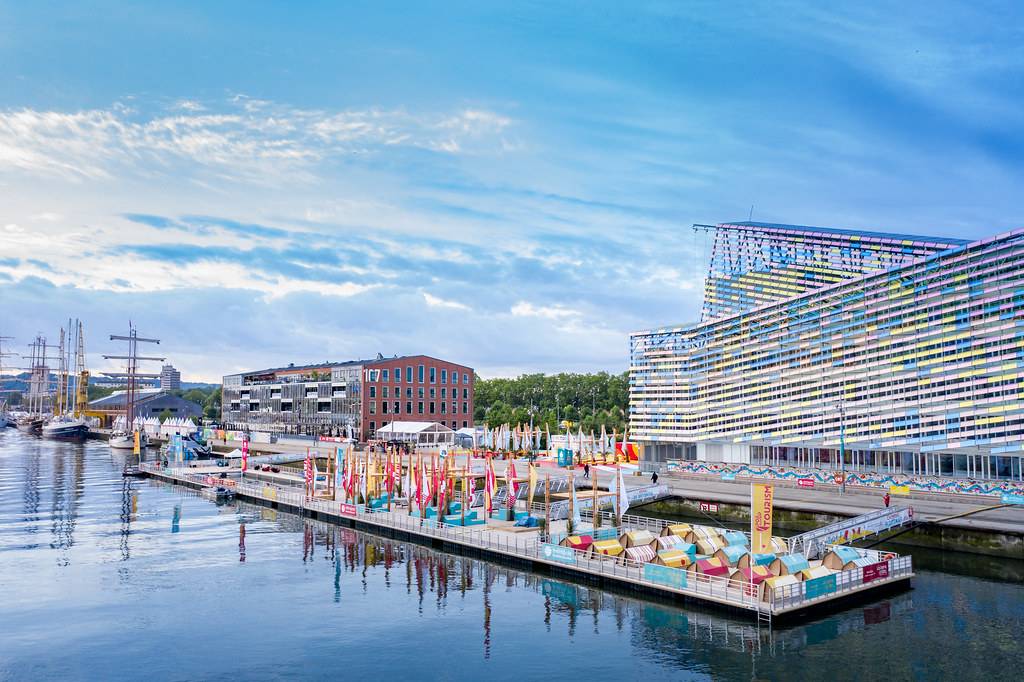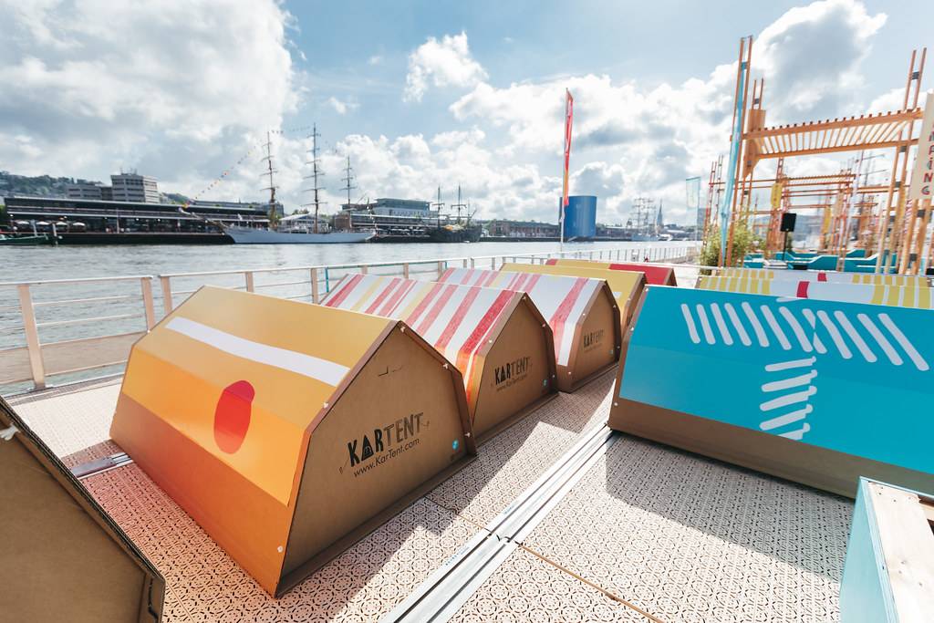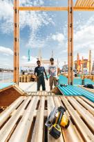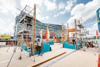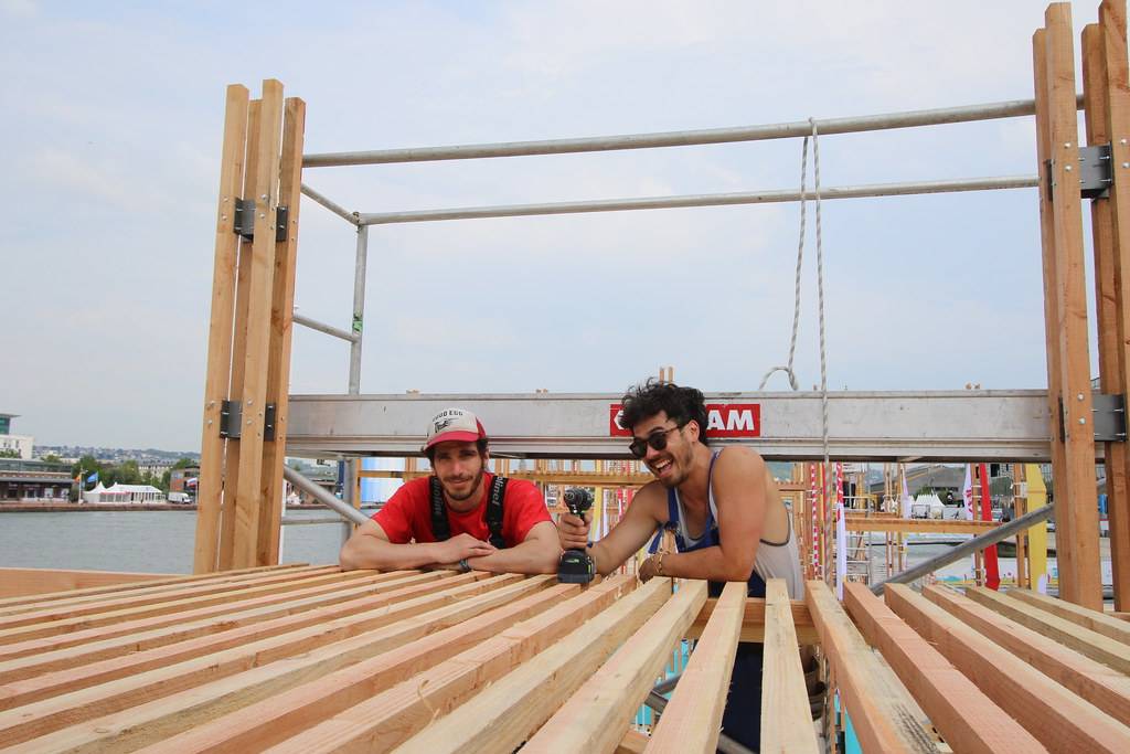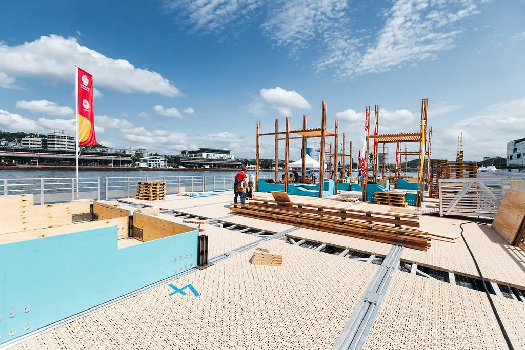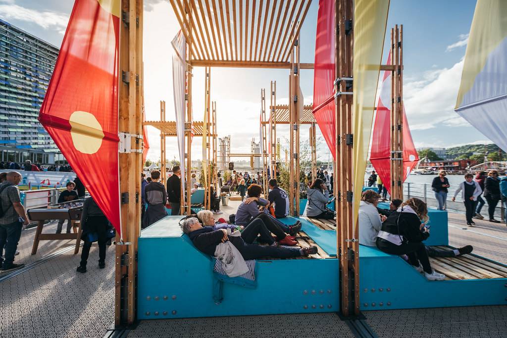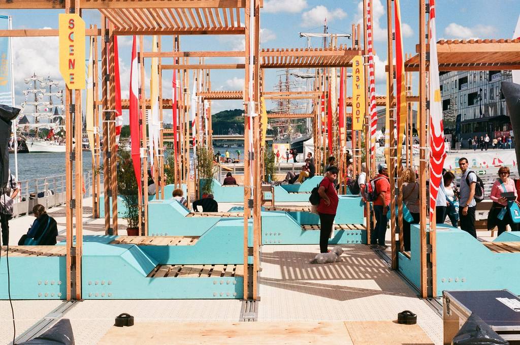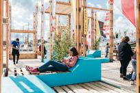 桅桿下是五彩斑斕的城市戶外家具。不同的形狀演變出不同功能的家具,躺椅、長凳、桌子、座椅長廊、露天看臺或舞臺,來到此處的市民和游客可以自由使用每個空間及設(shè)施。項目以零浪費為目標,在活動結(jié)束后所有家具都將搬去魯昂市,部分木材也將返還至魯昂的企業(yè),至于桅桿和帆布將留在活動方處,以備在未來的活動中使用。