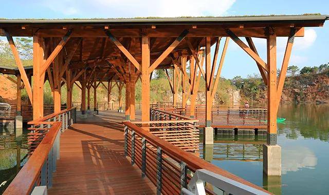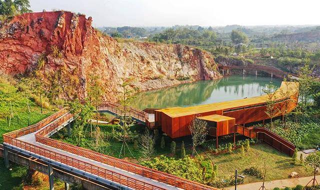 木浮橋等表現(xiàn)了精準(zhǔn)的技術(shù)水平,每一個(gè)臺(tái)階,每一片綠植,都和周邊場(chǎng)地巧妙契合,實(shí)現(xiàn)了技術(shù)和美學(xué)的統(tǒng)一。這種景深層次的營(yíng)造是對(duì)自然最大程度的尊重和考量,反映了礦坑原有的場(chǎng)所精神,使其具有中國(guó)山水畫(huà)的形態(tài)和意境,儼然一個(gè)精致的特色花園,充分體現(xiàn)了對(duì)生態(tài)與文化的保護(hù)與傳承,收獲了無(wú)數(shù)游客的“點(diǎn)贊”。