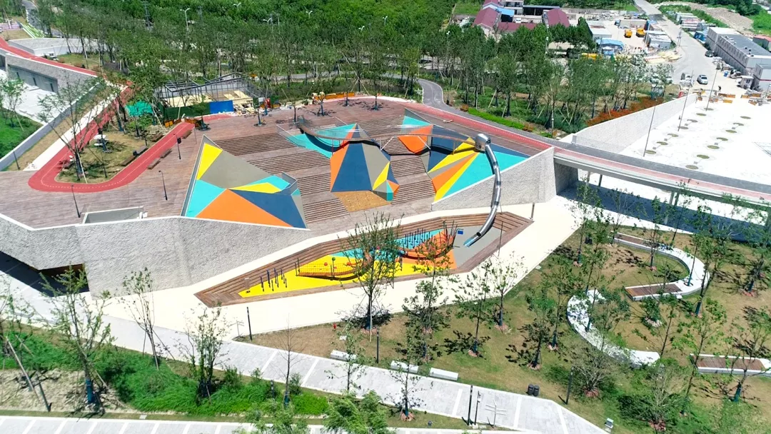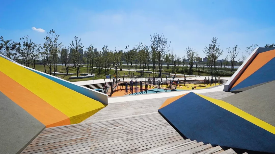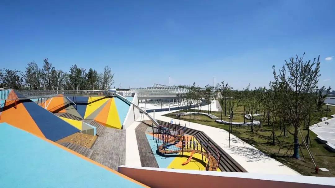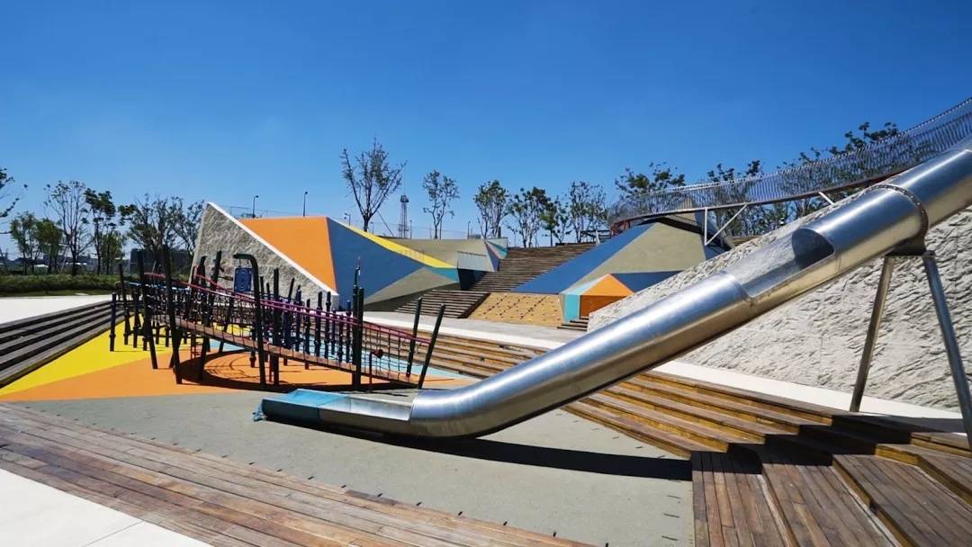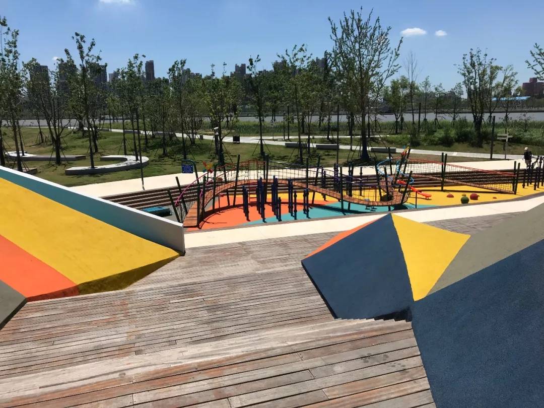 這個(gè)即將開(kāi)放的兒童樂(lè)園位于黃浦江東岸的“鰻鱺嘴濱江綠地”,黃浦江等河流轉(zhuǎn)折時(shí),凸肚的一邊形狀像嘴巴,形成了以“嘴”為地名的特征。鰻鱺嘴濱江綠地位于中環(huán)上中路隧道浦東濱江段,北承前灘休閑公園,東至前灘大道,南止三林北港,西臨黃浦江。 岸線長(zhǎng)度約800米,面積近7萬(wàn)平方米。兩年前,這里還是一片被捷東水泥廠等大量工業(yè)廠房和倉(cāng)庫(kù)堆場(chǎng)占據(jù)的土地,2016年沿岸建筑拆除,如今漫步道、跑步道和騎行道已貫通,并通過(guò)防汛墻的改建、山地地形的處理、音樂(lè)廣場(chǎng)和星光驛站的設(shè)計(jì),營(yíng)造開(kāi)放大氣的場(chǎng)地空間特色。