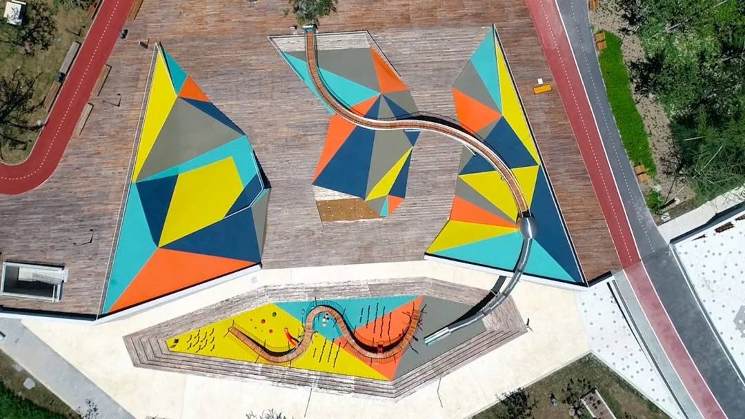 在顏色的使用上,我們利用對(duì)比色,選用明亮的顏色,而這種配色在城市其他地方見(jiàn)不到,或者很少見(jiàn)到。我們不想用常見(jiàn)的顏色搭配,習(xí)慣上,人們總是給孩子們那幾種顏色的搭配,認(rèn)為孩子們對(duì)顏色的偏好是這樣的,女孩子只會(huì)選粉紅色,男孩子會(huì)選藍(lán)色或淺藍(lán)色。而我們,堅(jiān)持多種顏色在一起使用,如此,這個(gè)公園的效果會(huì)非常非常的強(qiáng)烈。