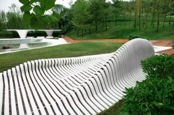 在“駐足”的動線之中,設(shè)置了從200cm逐漸提升到900cm高度不斷起伏的異形裝置,裝置不斷的高度變化也為使用者提供了多種活動的可能,最終900cm的高度不但很好的形成整體環(huán)境中的一個弱形式(Weak form),同時也定義出整個展園的西側(cè)邊界。裝置本身也可結(jié)合今后地產(chǎn)項目營銷的特性,利用不同元素或聲光電的小型裝置創(chuàng)造出不同的氛圍。