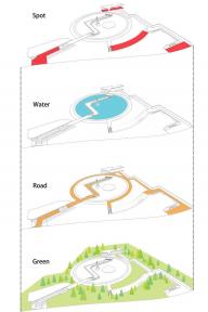 ▼“浸入”動線是一個讓使用者不斷接近中心水池的步道