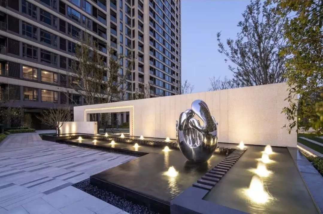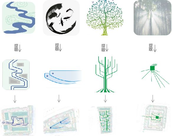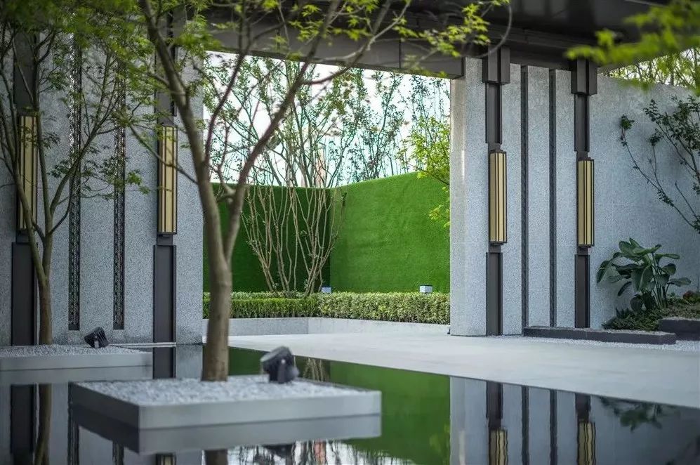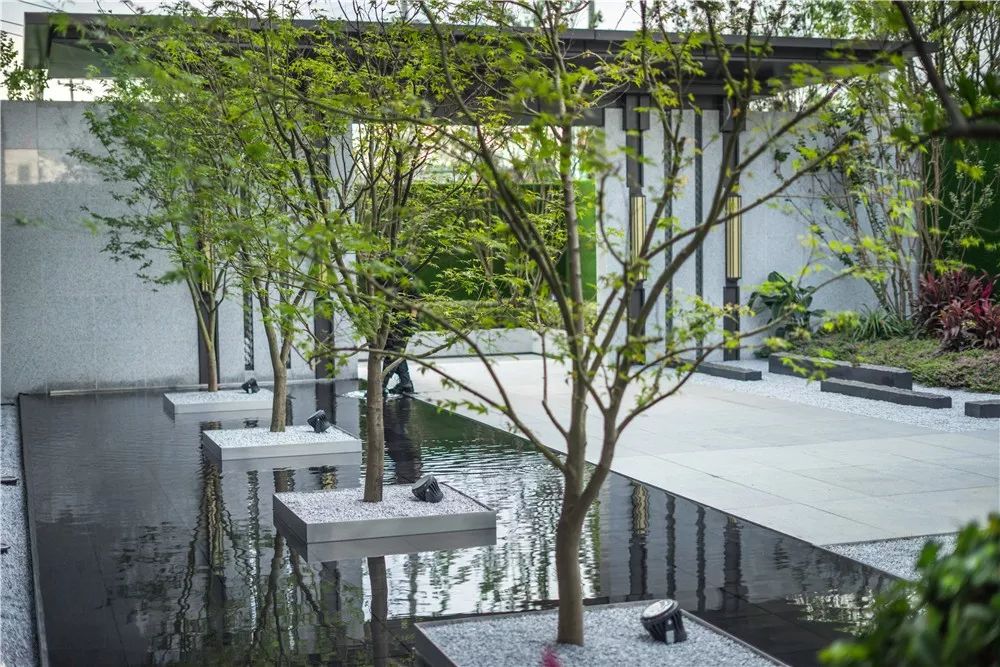 將“魚、水 、樹、光 ”元素融入景觀,借鑒中式園林造園精髓