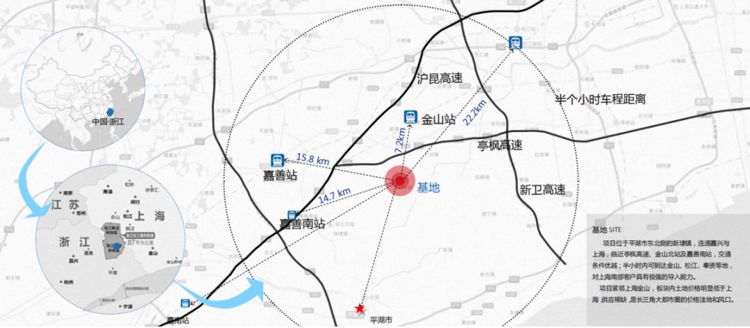 連通嘉興與上海,臨近亭楓高速、金山北站及嘉善南站,