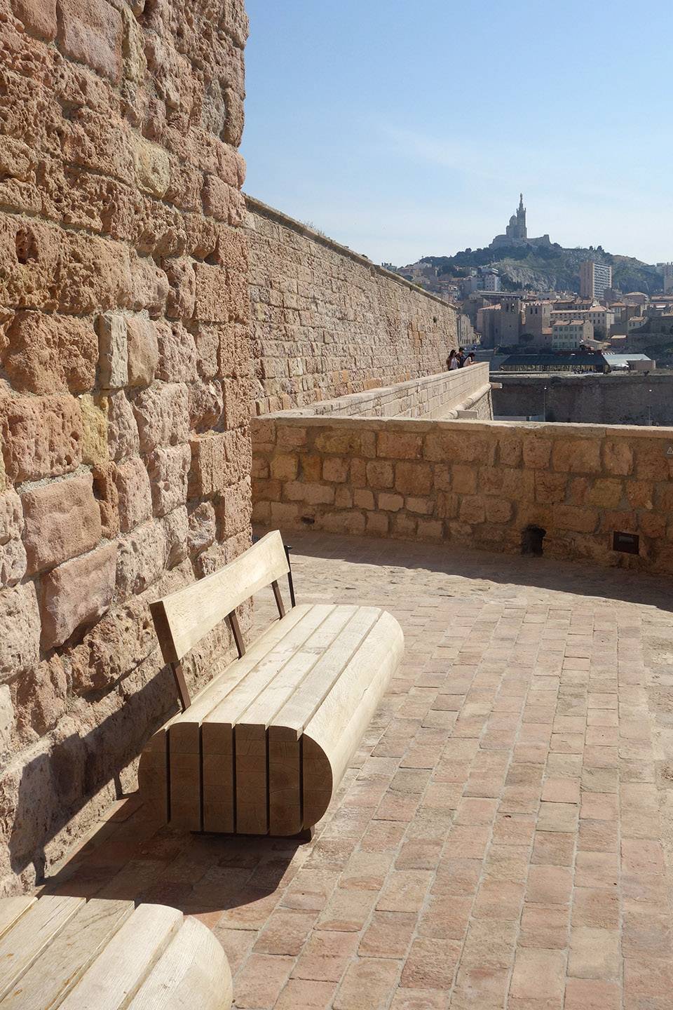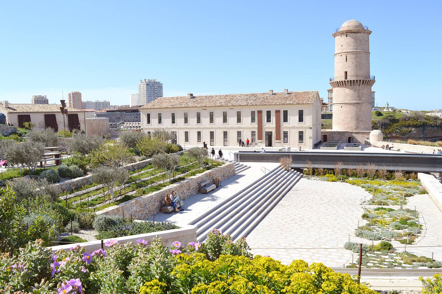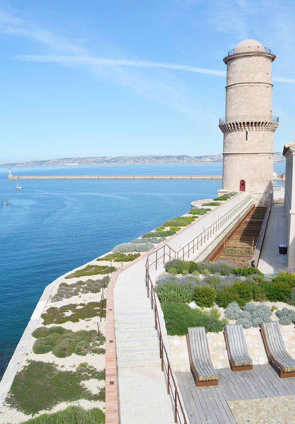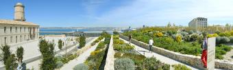 Canebière和Auffes花園位于防御工事景區(qū)下半部分空間的陸地上,享有絕佳的景觀視野,置身于其中,游客們不僅可以看到防御工事景區(qū)中充滿歷史感的森林,還可以俯瞰馬賽城市和Canebière大街的景觀。此外,花園中的一條步道還將狹窄的樓梯與山頂露臺(tái)連接在了一起。來(lái)到山頂露臺(tái),游客們不僅可以遠(yuǎn)眺欣賞到整個(gè)城市的絕妙景色,更可以回望欣賞整個(gè)Fort Saint Jean防御工事景區(qū)的全貌。