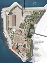 d'Armes廣場(chǎng)又名閱兵場(chǎng),位于小島的頂部,是整個(gè)防御工事景區(qū)的核心空間。它充滿了生機(jī)和活力,作為舉行會(huì)議和活動(dòng)的場(chǎng)所,對(duì)公眾開放。在本項(xiàng)目中,設(shè)計(jì)團(tuán)隊(duì)希望能夠通過簡(jiǎn)化布局來(lái)擴(kuò)大空間的使用面積,從而讓游客們能夠更好地了解防御工事景區(qū)的整體結(jié)構(gòu)。因此,他們重新設(shè)計(jì)了廣場(chǎng)北部的空間:平臺(tái)以成角的形式向外突出,俯瞰著海面;步道系統(tǒng)在加入無(wú)障礙設(shè)計(jì)的同時(shí),也提高了自身的連續(xù)性,將信標(biāo)塔與d’Armes廣場(chǎng)聯(lián)系了起來(lái)。廣場(chǎng)的花園中種植著各種科屬的草本植物,當(dāng)南風(fēng)襲來(lái)的時(shí)候,植物會(huì)隨風(fēng)飄搖。這個(gè)廣場(chǎng)可以說(shuō)是一個(gè)真正意義上的觀景平臺(tái),置身于此,人們不僅可以欣賞到遠(yuǎn)處和近處的自然景觀,還能看到碼頭上的熙熙攘攘,更能看到橫跨在港口之上的人行天橋。d’Armes廣場(chǎng)向北延伸,觀景平臺(tái)以成角的形式向外突出,俯瞰著海面;向西延伸到信標(biāo)塔和Horseman港口;向東延伸到退臺(tái)式休息空間。在廣場(chǎng)空間的基礎(chǔ)上,設(shè)計(jì)團(tuán)隊(duì)對(duì)西側(cè)的Georges Henri Rivière大樓的布局進(jìn)行了適當(dāng)?shù)恼{(diào)整,在其中設(shè)置了接待處、咖啡廳、展覽研討空間等,以突出其戰(zhàn)略地位。此外,設(shè)計(jì)團(tuán)隊(duì)還對(duì)d’Armes廣場(chǎng)的高差進(jìn)行了一定的處理,以期減少不必要事故的發(fā)生概率,同時(shí)也能減少建筑物之間的樓梯和地形坡道。例如,Mucem人行天橋入口處和Georges Henri Rivière大樓入口處之間的高差就經(jīng)過了一定的調(diào)整:平坦的地面不僅能夠增強(qiáng)各空間的可達(dá)性,同時(shí)還能確保廣場(chǎng)與待建的St Laurent人行天橋之間的和諧關(guān)系。