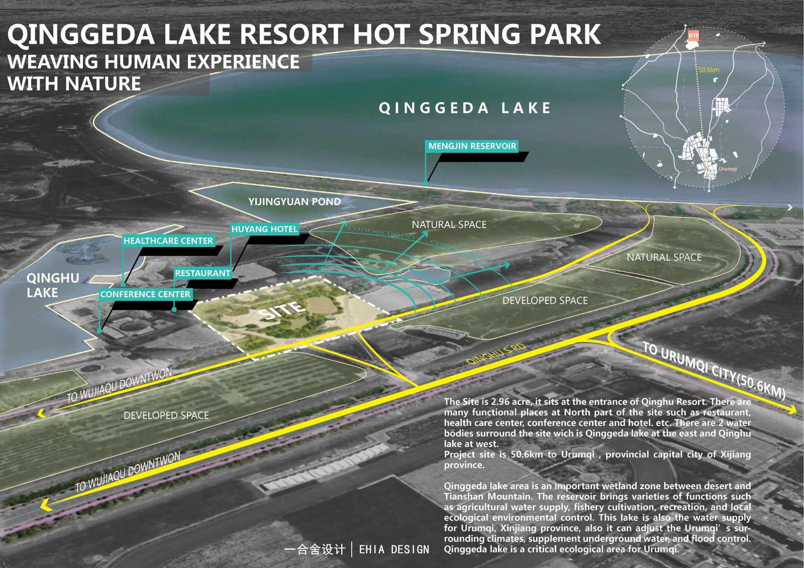 本項目位于新疆烏魯木齊西北35公里五家渠市青格達湖旅游度假區(qū)內。該地區(qū)的主要水源補給來自附近天山山脈的雪山融水,此水庫為烏魯木齊及其周邊地區(qū)提供水源供給,這里動植物生態(tài)系統(tǒng)完善, 且交通發(fā)達。