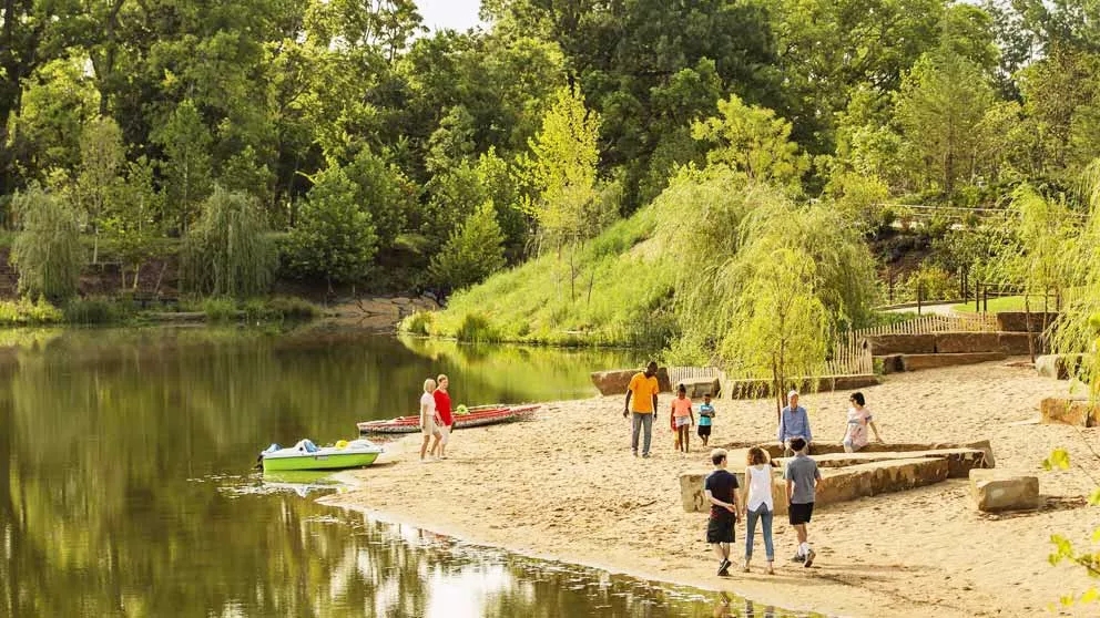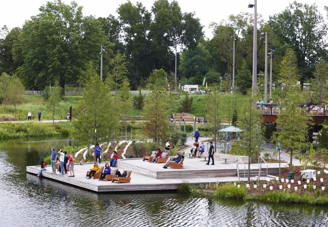 如今,公園內(nèi)有多樣而豐富的濱水空間,既有在圖爾薩這樣的內(nèi)陸城市少見的海灘風(fēng)景,也有生態(tài)濕地、佩奇池塘、水上花園等供你觀察、劃船及休閑,同時使用水的空間可以有效降低夏季溫度。