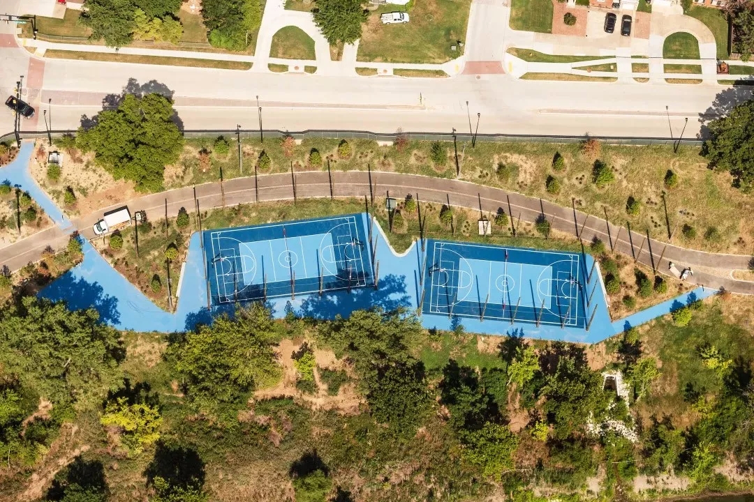 滑板公園、籃球場等體育設(shè)施也給青少年和年輕人提供了眾多享受公共空間戶外活動的機(jī)會??拷\噲龅幕骞珗@,由California Skateparks公司設(shè)計(jì)完成,包含從低級到高級不同級別的路線。滑板公園附近是籃球場、排球場、曲棍球場和街頭足球場。