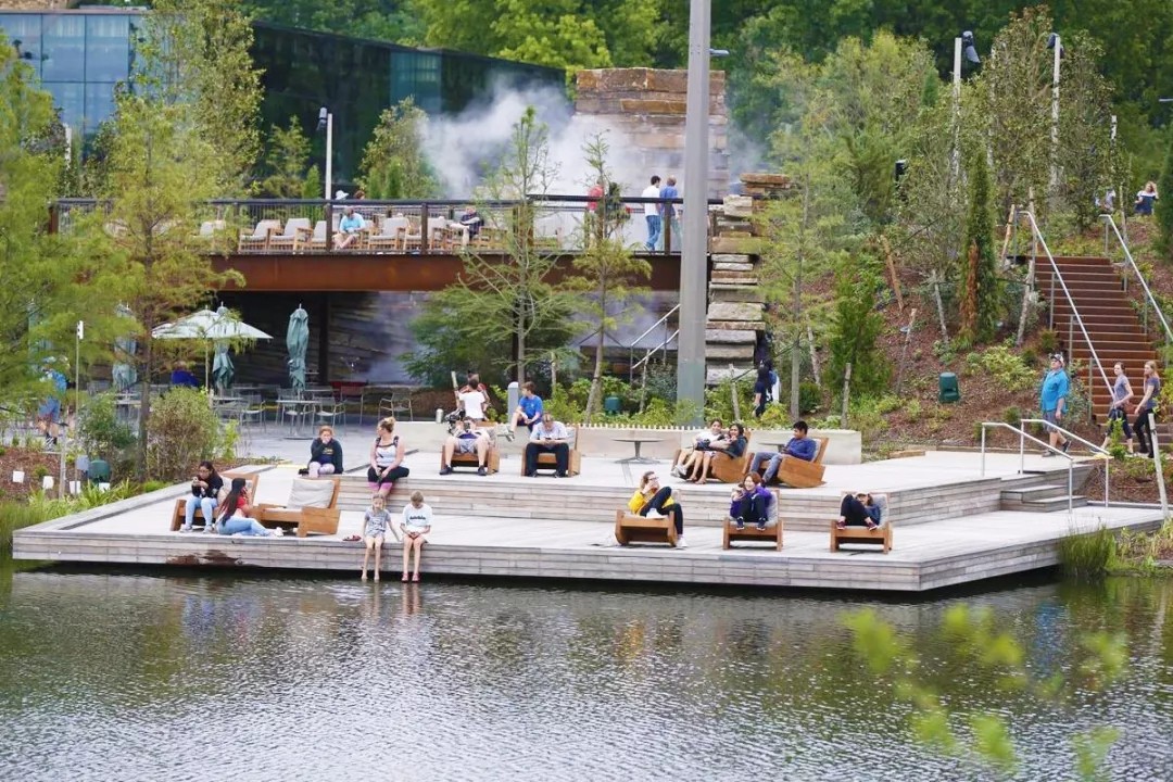 設(shè)計(jì)團(tuán)隊(duì)認(rèn)為i隨著生活環(huán)境和方式的改變,當(dāng)下的公園更重視活動參與和人與空間的有機(jī)融合,這與早期注重風(fēng)景欣賞的公園有所不同。所以,Gathering Place公園有大量的戶外活動項(xiàng)目和體驗(yàn)空間,保證游客每次回訪時都能享受新鮮感。包括ONEOK船屋、威廉姆斯小屋、草坪、滑板公園、運(yùn)動設(shè)施、空中花園等。草坪可容納7000多人,可舉辦各種音樂表演、慶典、婚禮等活動。Oneok船塢提供室內(nèi)及半戶外休閑空間,建筑內(nèi)設(shè)有咖啡館、餐廳、休息室等日常可利用空間。