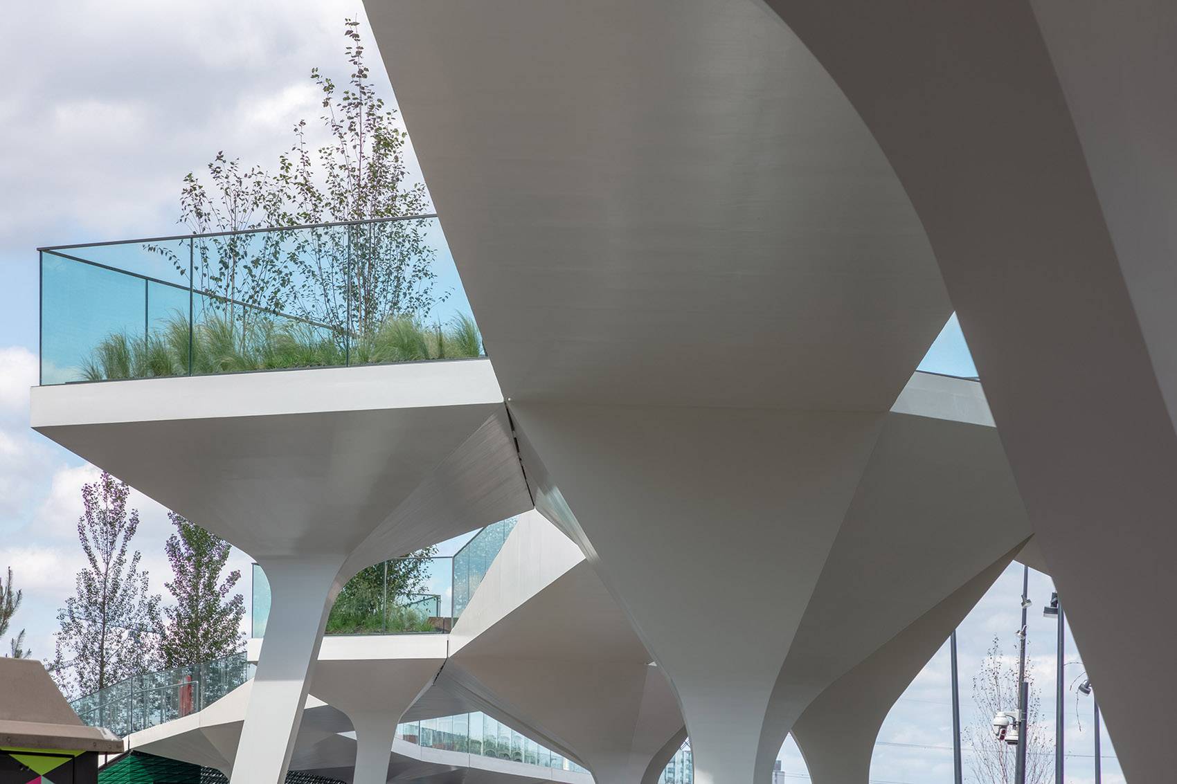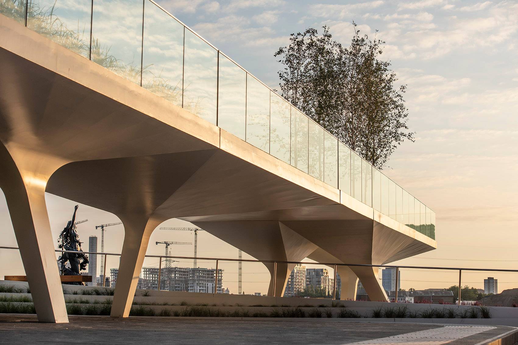 ▼支撐結(jié)構(gòu)和橋梁呈現(xiàn)出機(jī)翼般的輕盈感覺(jué)