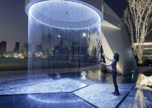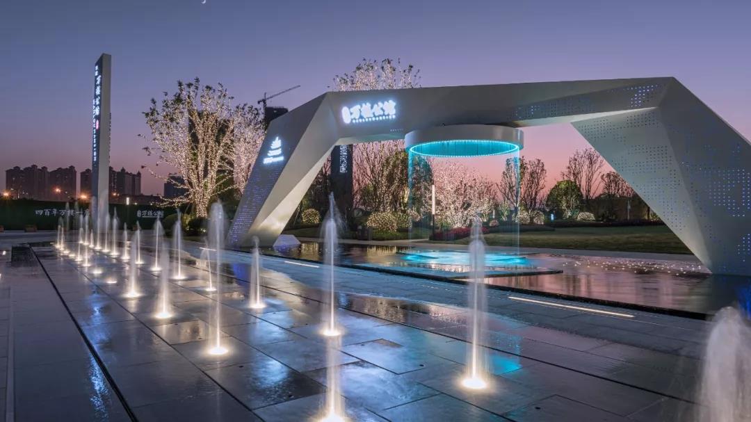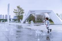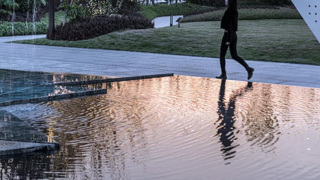 圓形數(shù)控水幕呈現(xiàn)時,絢麗的燈光,仿佛穿梭的時空隧道,通過水中汀步,穿梭在其中,帶來豐富的視覺、聽覺、觸覺等多方面的空間感知體驗。