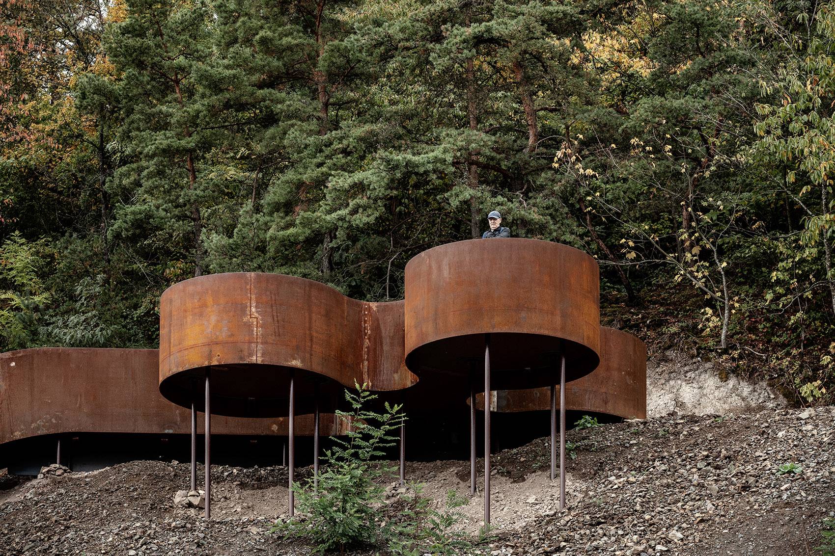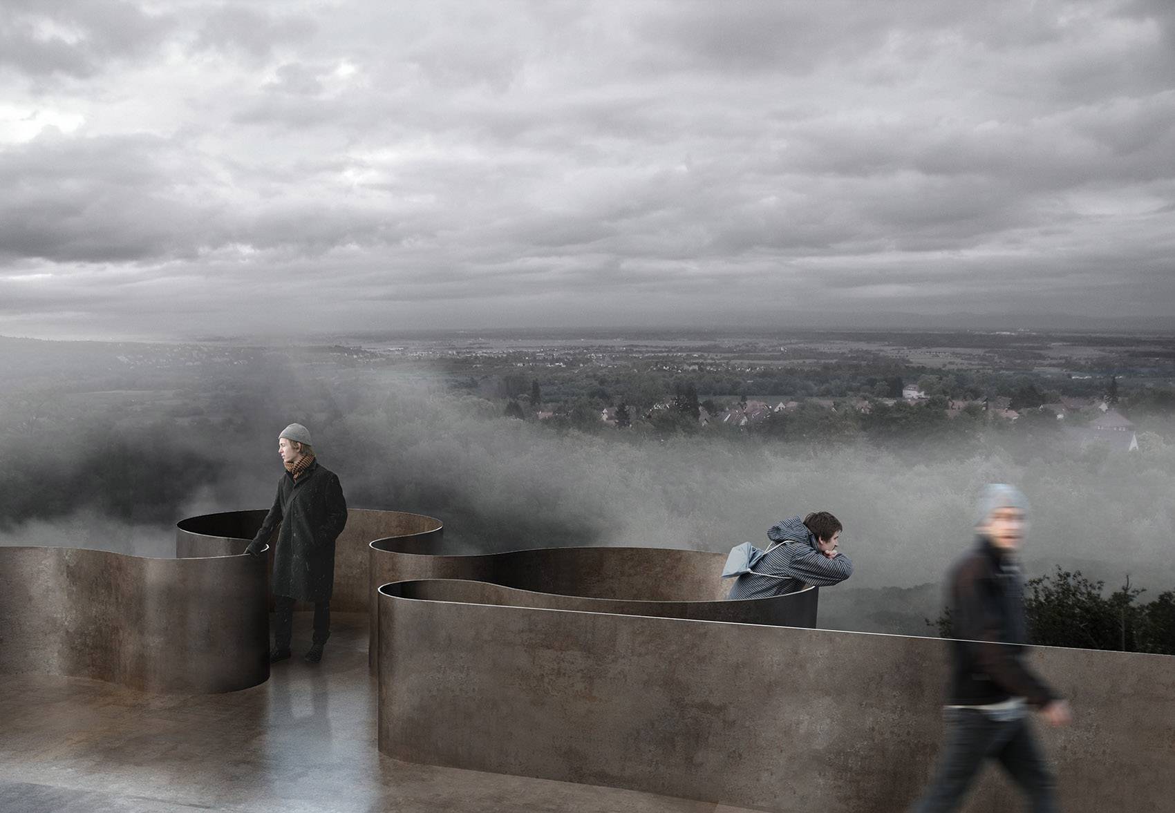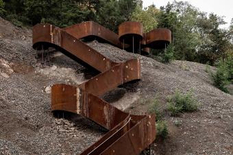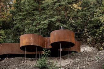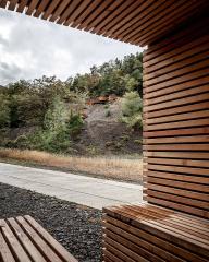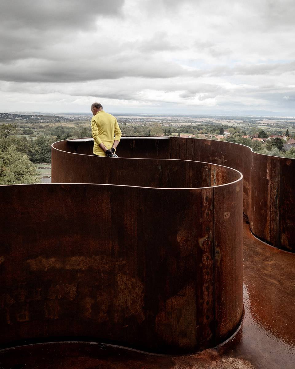 Saint-Nabor則講述著一個(gè)關(guān)于運(yùn)氣的故事。經(jīng)過(guò)了數(shù)年的關(guān)停與修復(fù),自然正一點(diǎn)一點(diǎn)地重新占領(lǐng)這片曾經(jīng)的工業(yè)用地。舊日開(kāi)采礦石的機(jī)械在山體上留下了層疊的痕跡,而設(shè)計(jì)團(tuán)隊(duì)巧妙地利用這一地形,在臺(tái)階的最高處以修飾鋼材搭建起一個(gè)俯瞰著Rosheim山谷與阿爾薩斯平原的觀景臺(tái)。