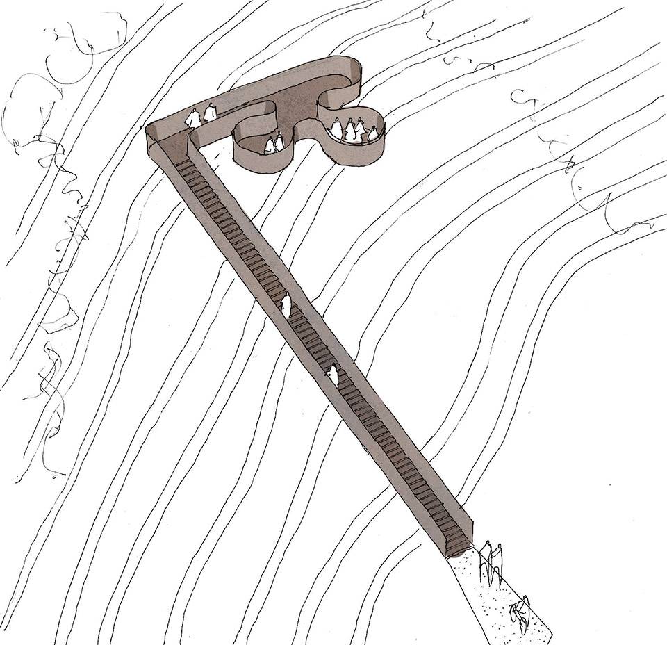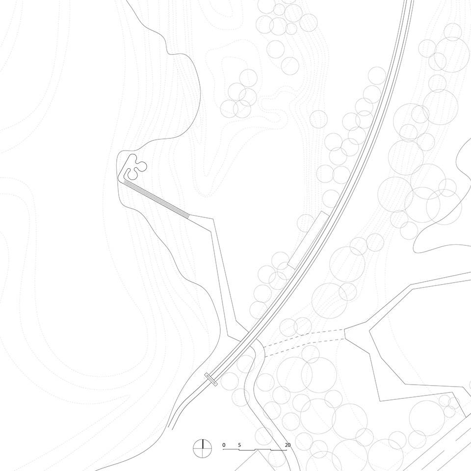 通往礦場(chǎng)的鐵路呼應(yīng)著孚日山脈地區(qū)起伏的地形蜿蜒而上,盡管并不明顯,但如今遺留的鐵路系統(tǒng)仍然悄悄講述著這片場(chǎng)地與在此生活的人們的過(guò)往。而如今,這道順著鐵路延伸的路徑引領(lǐng)著人們重新找回城市已漸漸被人遺忘的一面,無(wú)論是到訪的游客抑或城市居民都將從一個(gè)全然不同的角度去欣賞似乎已習(xí)以為常的景觀。而正如曾經(jīng)同時(shí)承擔(dān)起工業(yè)與交通兩個(gè)職責(zé)的鐵路一般,路徑的設(shè)計(jì)也必須在提供便捷交通的同時(shí),考慮到穿行其上的人們的視覺(jué)感受。