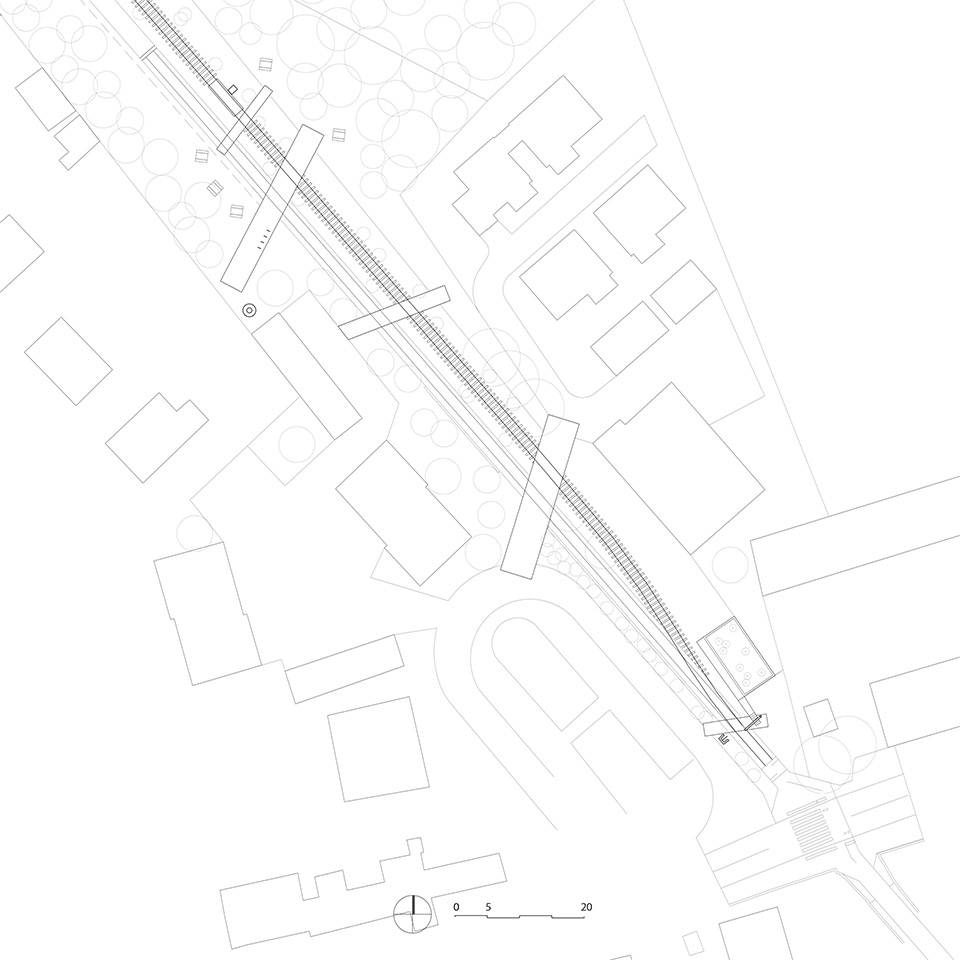 Ottrott講訴著旅行的故事。作為曾經(jīng)的火車站點(diǎn),這個(gè)節(jié)點(diǎn)空間將鐵路的歷史生動(dòng)地呈現(xiàn)出來(lái),橋梁、桿秤、起重機(jī)、抽水機(jī),點(diǎn)綴在場(chǎng)地中的工業(yè)元素?zé)o一不在敘述這曾經(jīng)的過(guò)往。在錯(cuò)落的建筑肌理中,活躍的水景與堅(jiān)毅的混凝土交相輝映,將建筑、歷史元素與景觀相互連接。