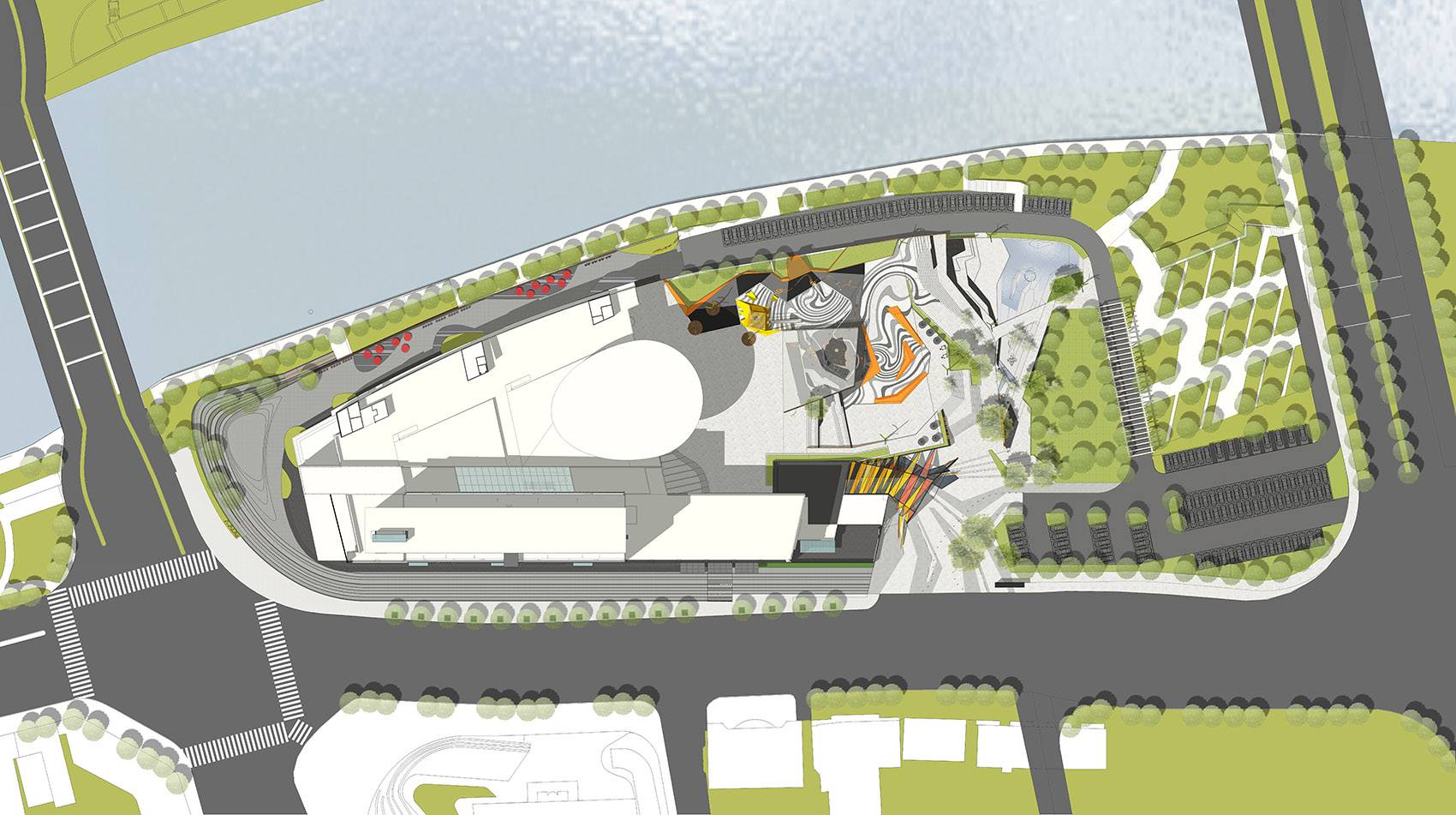 ▼總平面圖,場地采用溫暖明亮的顏色
