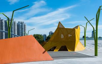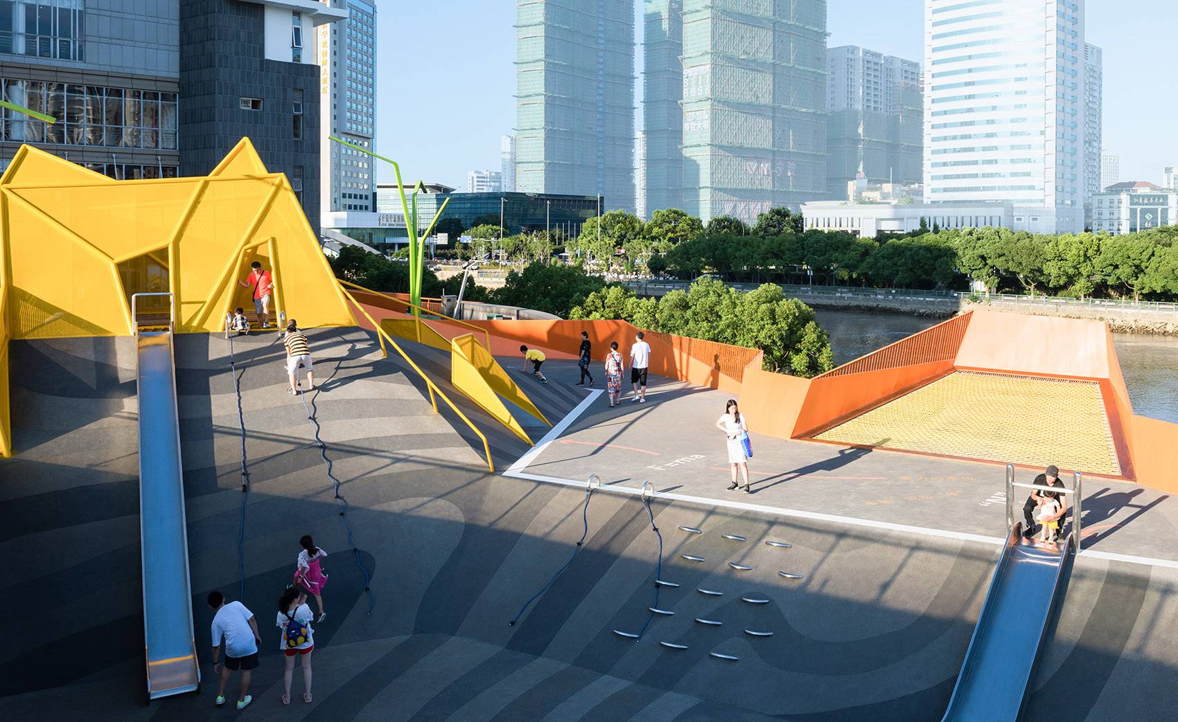除了這個(gè)以“重力”為支點(diǎn)的主題樂園,結(jié)合城市的濱水界面橋頭空間等,我們也對(duì)原有市民生活依托與這片土地的各種行為進(jìn)行了分析,希望新的設(shè)計(jì)不是割斷他們與原有生活模式的關(guān)系,而是強(qiáng)化他們?nèi)粘P袨榈捏w驗(yàn)并給到他們更豐富完整的記憶。