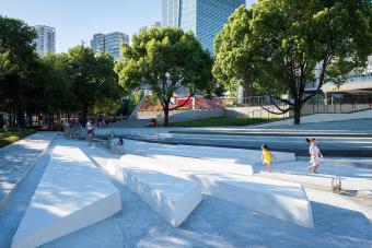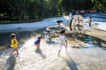 ▼公園中設(shè)置各種與水相關(guān)的游樂設(shè)施