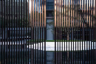 ▲暖色系的運(yùn)用比例,無論白天還是夜晚,投射在格柵屏風(fēng)上的陽光與燈影,都溫潤和煦。