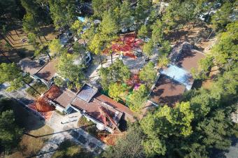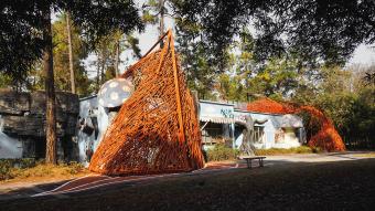 第二屆全國高校竹設(shè)計建造大賽以”竹建構(gòu)的無限創(chuàng)造”為主題,將高校的設(shè)計和建造實踐與落地項目結(jié)合,希冀促進安吉竹文化、生產(chǎn)、生活、生態(tài)的融合。設(shè)計場地位于中國竹子博覽園熊貓館附近的紀念品商店,整個場地是由U型單層建筑為合成的半包圍空間,院內(nèi)樹木高聳,被層層樹木包圍,十分隱匿?;凇敝窠?gòu)的無限創(chuàng)造”的議題,我們期望以新的設(shè)計方式創(chuàng)造一個竹與場地之間的共生環(huán)境,并探究竹設(shè)計在次方法下的延續(xù)與發(fā)展。此項目獲得2019第二屆全國高校竹設(shè)計建造大賽三等獎。