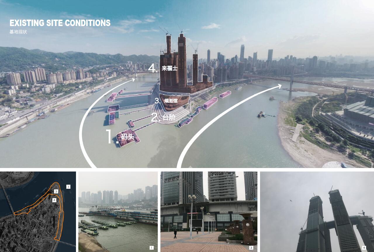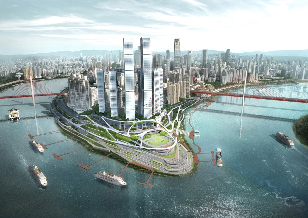 設(shè)計(jì)以“文匯江沚,重回江灘”為總體設(shè)計(jì)理念,旨在打造重慶國(guó)際貿(mào)易中心,長(zhǎng)江上游國(guó)際旅游門戶。