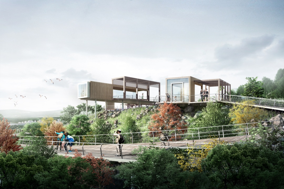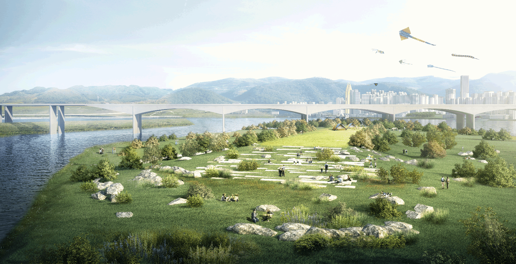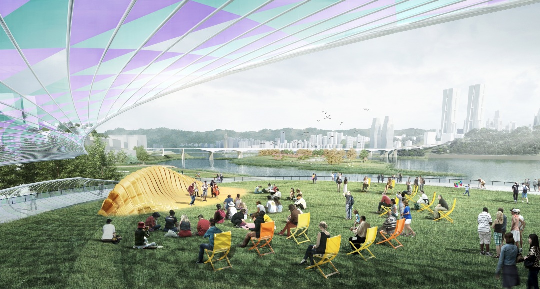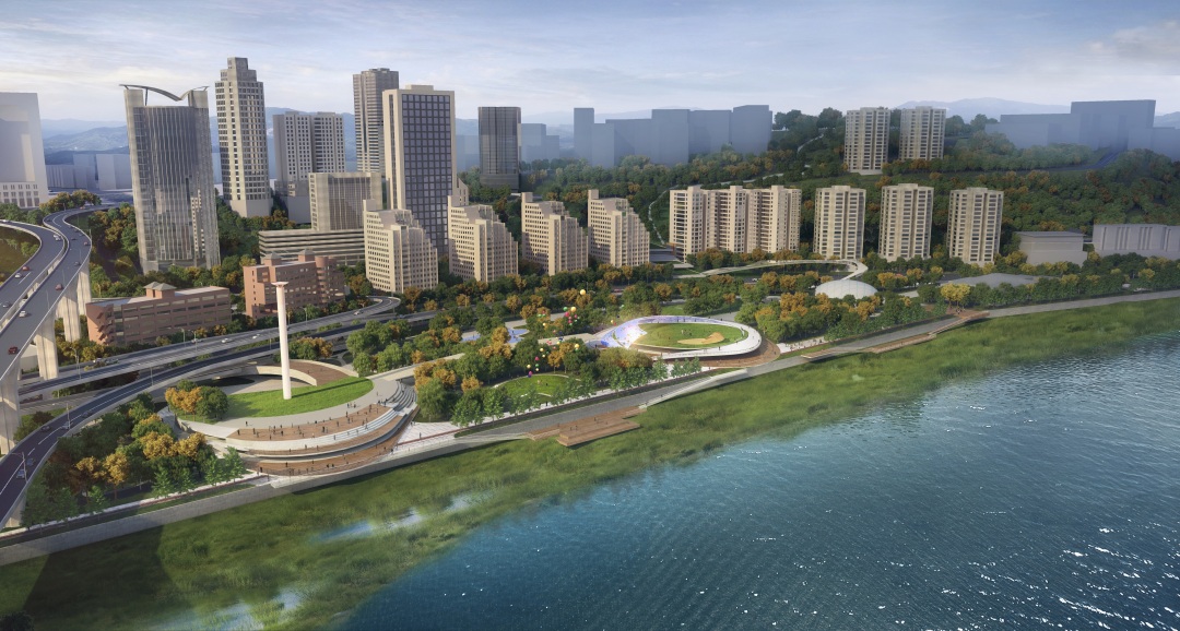 在現(xiàn)狀綠地空間上,植入日常休閑功能與節(jié)慶活動(dòng)功能,形成未來山城江畔的活力之地;同時(shí),增設(shè)向長(zhǎng)江層層錯(cuò)落鋪開的景觀觀景平臺(tái),以獲得充分的觀賞界面。此外,邁柏在保留植被的基礎(chǔ)上,完善公園周邊交通配套,加強(qiáng)與周邊聯(lián)系,以吸引更多游客。